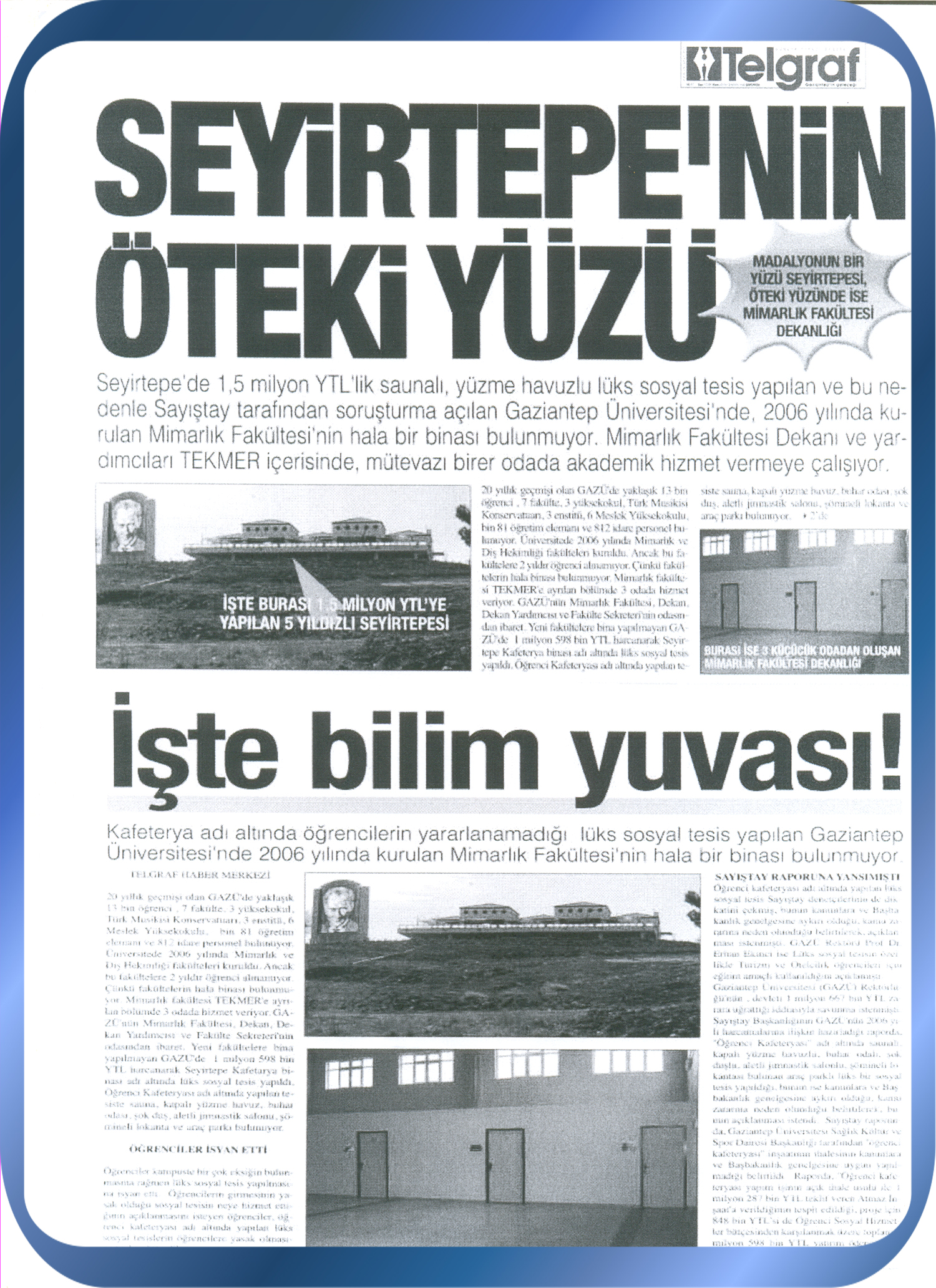 Üniversite yönetiminin çalışanlarına layık gördüğü, Beden Eğitimi ve Spor Yüksekokulu öğrencileri, Turizm Meslek Yüksekokulu öğrencileri ile Gaziantep Meslek Yüksekokulu Aşcılık programı öğrencilerinin pratik eğitim yaptıkları bu tesislere ilişkin basında çok sayıda spekülatif haber çıkmıştır. Bu haberlere ilişkin Üniversitemiz tarafından gerekli açıklamalar yapılmış olmasına rağmen halen “Seyirtepe Üniversitesi” gibi başlıklı haberler yayınlanmaktadır. Bu haberler Gaziantep yerel gazetesi Telgraf‘ta ekte sunulduğu biçimde yayınlanmıştır.