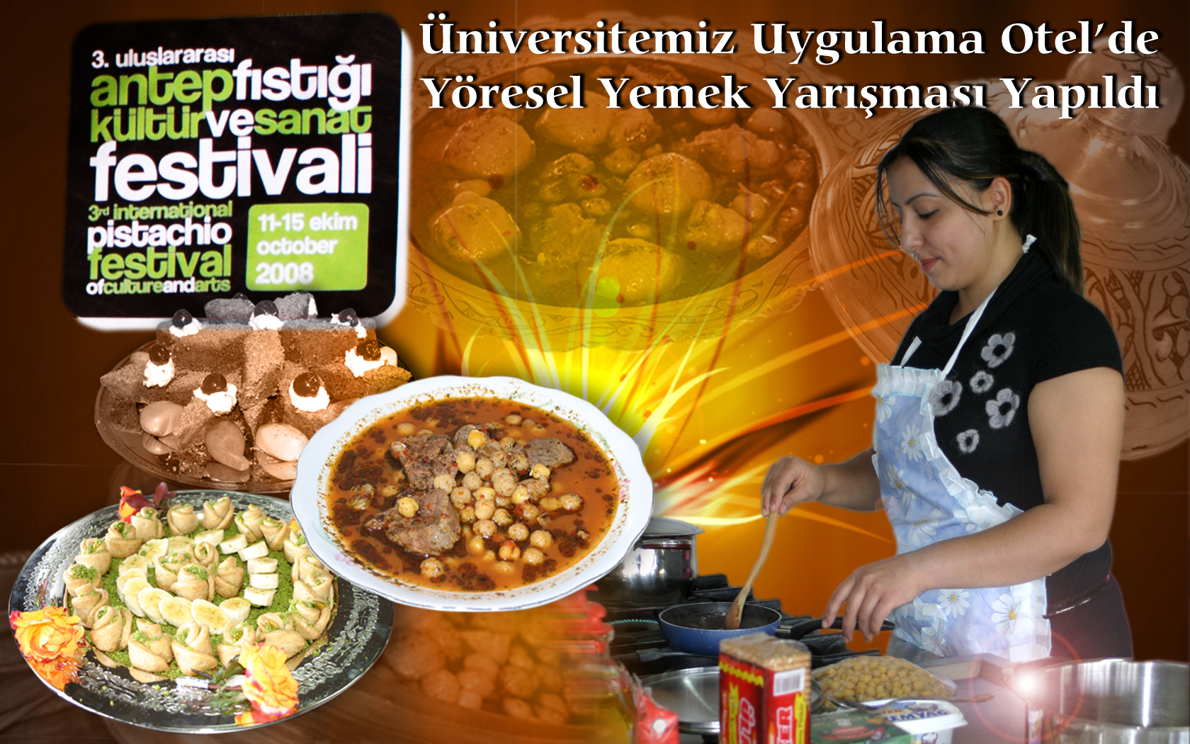 III. Uluslararası Antep Fıstığı Kültür ve Sanat Festivali çerçevesinde yapılan “Yöresel Yemek Yarışması” Gaziantep Büyükşehir Belediyesi ve Gaziantep Üniversitesi işbirliği ile bugün saat 10.00’da Üniversitemiz Turizm Uygulama Oteli Mutfağı’nda gerçekleştirildi.