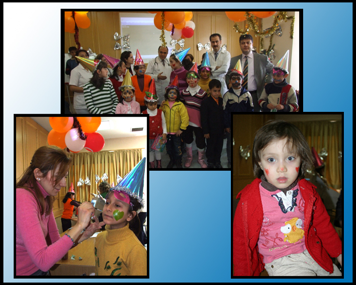 Geleneksel olarak gerçekleştirilen ve bu yıl üçüncüsü düzenlenen yılbaşı eğlencesi çocuklara unutamayacakları bir gün yaşattı. 3 – 12 Yaş grubu çocukların katıldığı eğlencede hediyeler dağıtıldı. Yılbaşı eğlencesine, Hastane Başhekimi Prof. Dr. Levent Elbeyli, İç Hastalıkları Ana Bilim Dalı Öğretim Üyeleri Prof. Dr. Ersin Akarsu, Prof. Dr. Mustafa Araz, Doç. Dr. Şebnem Aktaran, Arş. Gör. Dr. Müge Özsan, Çocuk Sağlığı ve Hastalıkları Ana Bilim Dalı Öğretim Üyeleri Doç. Dr. Mehmet Keskin, Doç. Dr. Özlem Keskin, Diyabet Hemşiresi Fatma Temiz, Hemşirelik Eğitim ve Organizasyon Sorumlusu Süreyya Yılmaz, pek çok sayıda hasta yakını ve idari personel katıldı.