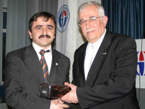 Söyleşinin sonrasında GÜNSİAF Başkanı Cahit Erbalcı ile HÜRSİAD Başkanı Mehmet Taşdemir’e, Üniversitemiz Rektör Danışmanları Prof. Dr. Cahit Bağcı ve Doç. Dr. Mehmet Koruk hediye takdim etti.