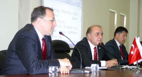 “Üniversite – sanayi işbirliğinin toplantılarda birbirimizi ikna ettiğimiz konulardan daha öteye taşınması gerektiğini düşünüyorum” diyen Ticaret Odası Başkanı Mehmet Aslan, “somut icraata yönelik, takvime bağlanarak, konuların belirlenmesi gerekir. Gazintep’te diğer şehirlere göre daha fazla Üniversite-şehir bütünleşmesi var. Gerek biz gerekse sanayi odamız, üniversitemizde yayımlanmış bir çok eserin, kitabın sahiplenmesi konusunda diğer illerden çok daha ileride. Bir çok müşterek toplantı yapıyoruz, bir çok toplantının finansmanında birbirimize destek veriyoruz. Şuanda içinde bulunduğumuz okul, Türkiye’de örneği bulunmayan bir okul” diyerek, bunların çok önemli adımlar olduğunu söyledi.