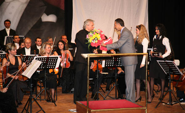 Konser sonrasında Rektör Yardımcısı Prof. Dr. Fahrettin Göğüş tarafından Şef Rengim Gökmen’e çiçek ve hediye takdim edildi.