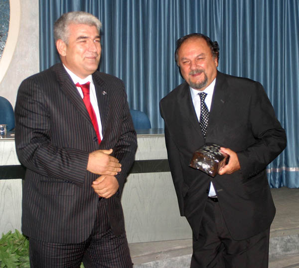Konferans sonunda Yazar Kaya Öztaş’a Üniversizemiz Rektör Danışmanı Prof. Dr. Mehmet Özaslan tarafından hediye takdim edildi.