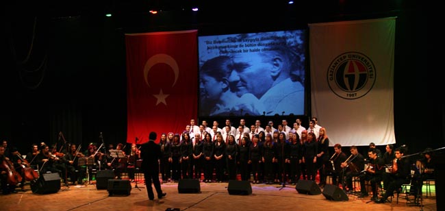 Gaziantep Üniversitesi Atatürk Kültür Merkezi’nde, Atatürk’ün ebediyete intikal edişinin 71. yıl dönümü etkinlikleri çerçevesinde “ATATÜRKÜLERİ” adlı konser düzenlendi.