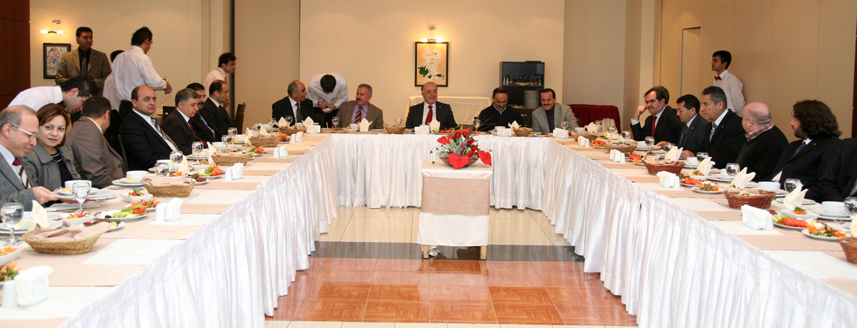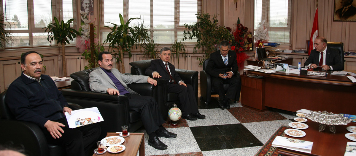 Suriye ziyareti öncesinde Gaziantep Üniversitesi’nde buluşan heyet, Üniversitemiz Rektörü Prof. Dr. M. Yavuz Coşkun’u makamında ziyaret etti. Rektörlük binasında gerçekleşen ziyaret sonrasında Üniversitemiz Rektörü Prof. Dr. M. Yavuz Coşkun tarafından heyete, Üniversitemiz Seyirtepe Sosyal Tesislerinde öğle yemeği verildi.