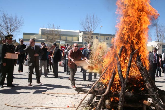 132-nevruz-ates.jpghalay.jpgAçılış konuşmalarından sonra Nevruz ateşi yakılarak, “Bereket Tepsisi” ateşe atıldı. Gaziantep Üniversitesi Kültür Müdürlüğüne bağlı Halk oyunları Topluluğu eşliğinde Nevruz törenine katılanlar birlikte halay çektiler.