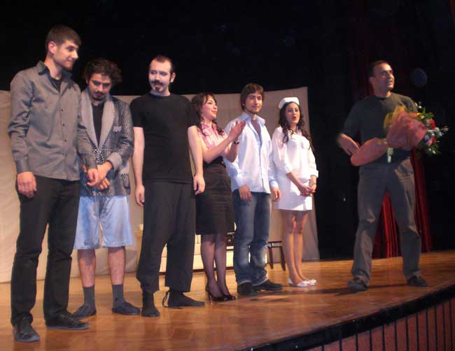 Oyunun sonunda Üniversitemiz Tiyatro Kulübü Başkanı Dr. Hüseyin Toktamış tarafından oyunculara çiçek takdim edildi.