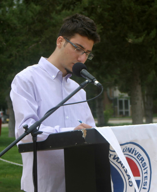 Saygı Duruşu ve İstiklal Marşı’nın sonrasında Üniversitemiz Atatürkçü Düşünce Topluluğu Yönetim Kurulu adına konuşan Atatürkçü Düşünce Topluluğu Yönetim Kurulu Üyesi Anıl Oymacı, 23 Nisan 2010’da Türk Milletinin kaderini kendi elleriyle şekillendirmeye başlayışının 90. yıldönümünü kutluyor olacağımızı söyledi. Oymacı, hepimizin, bu büyük başarının mimarlarının evlatları olmaktan övünç ve mutluluk duyduğumuzu ifade etti.