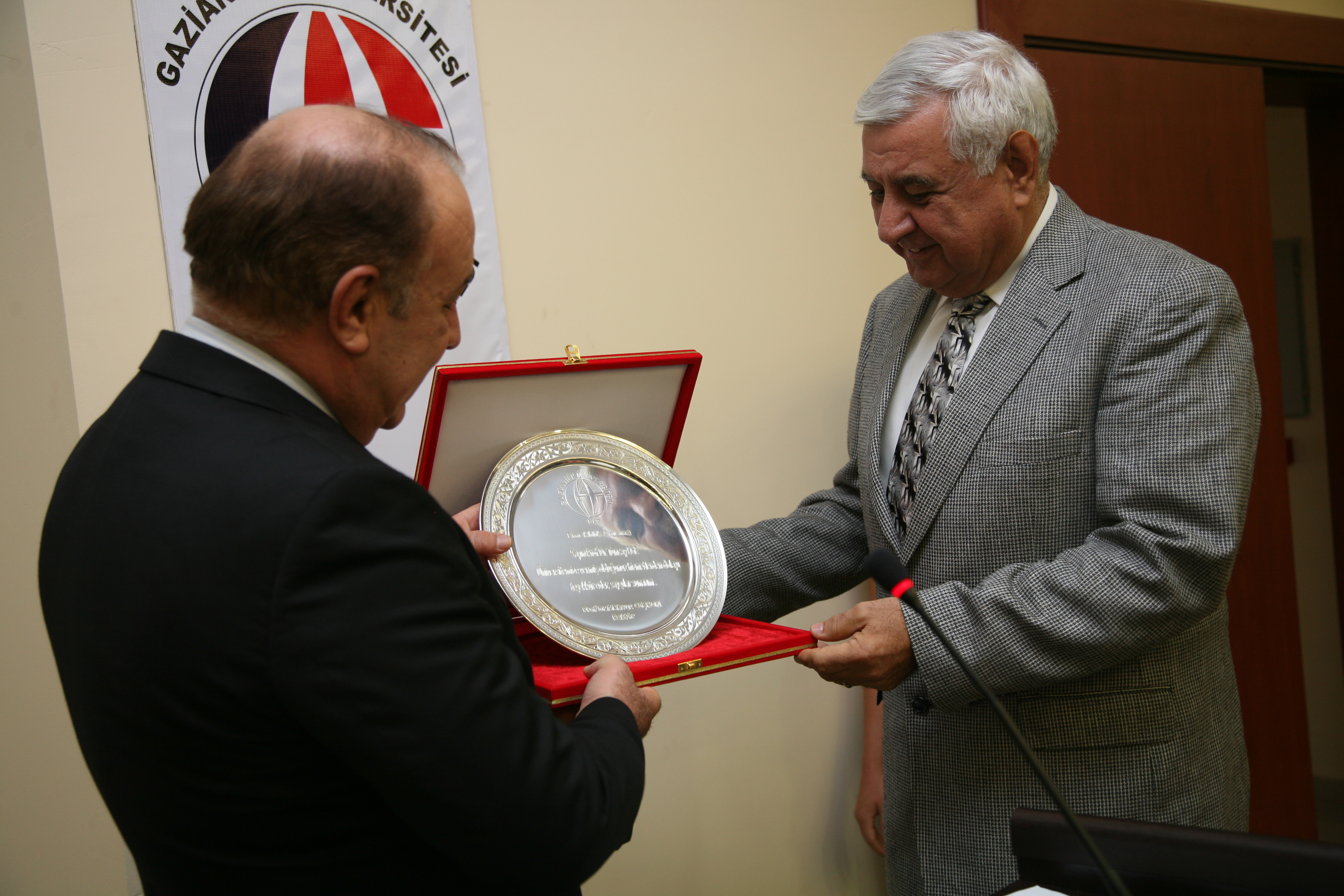 Konuşmaların sonrasında Gaziantep Üniversitesi Rektörü Prof. Dr. M. Yavuz Coşkun tarafından, Prof. Dr. Tuncay Ege’ye plaket takdim edildi.
