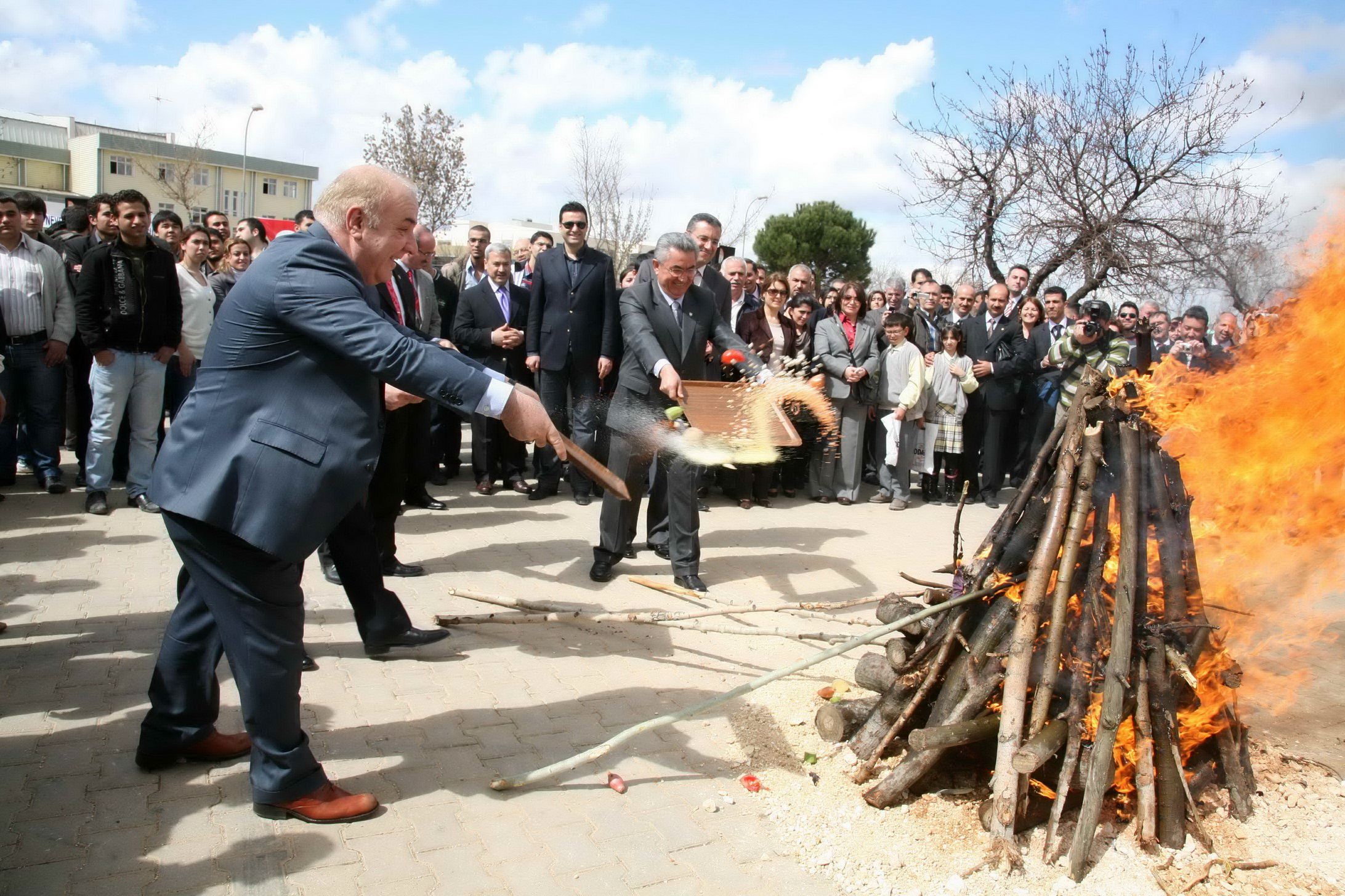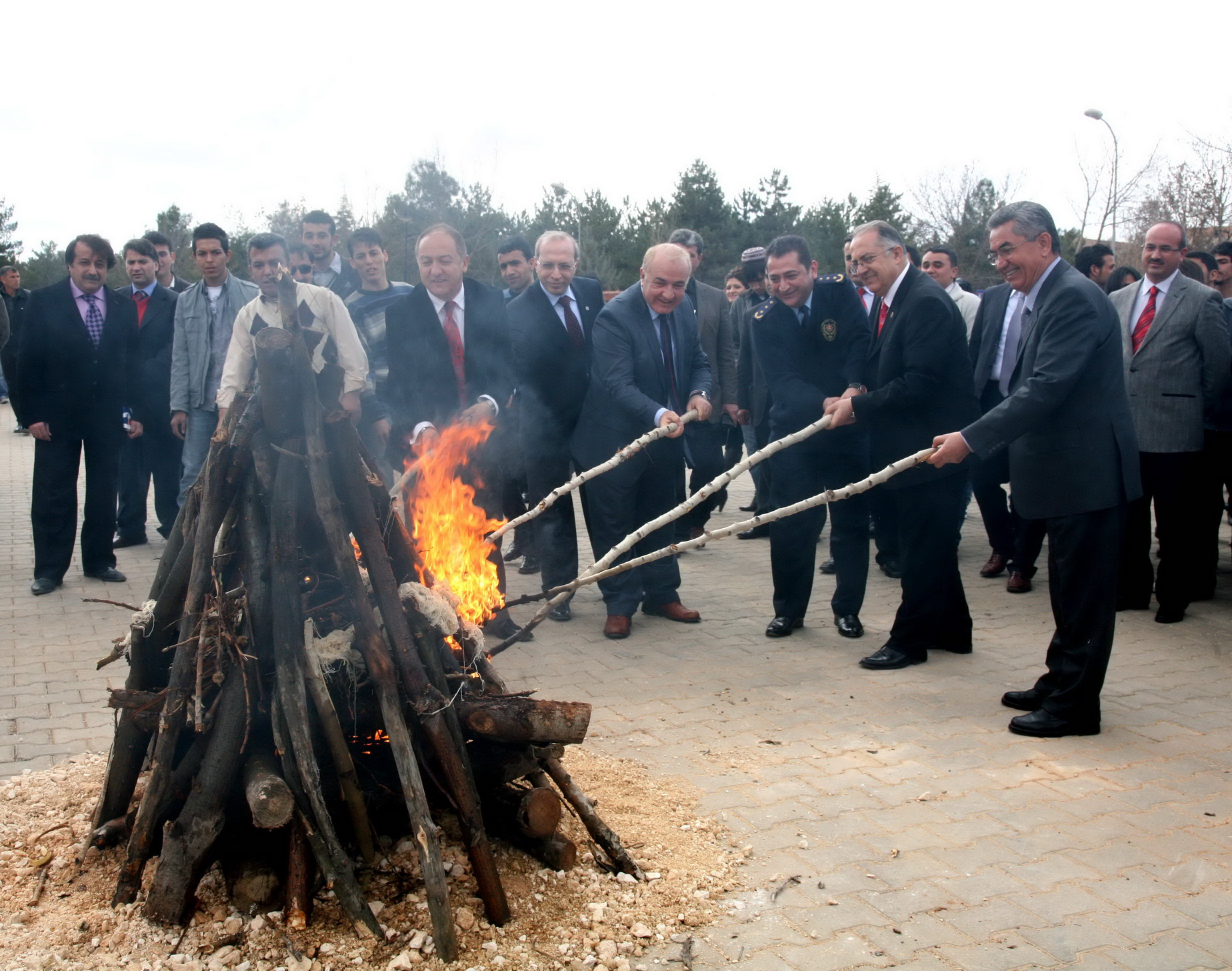 Gaziantep Üniversitesi Kültür Müdürlüğü öğrencileri tarafından Üniversitemiz park alanında yakılan Nevruz ateşine; Vali Yardımcısı Mevlüt Kurban, Cumhuriyet Başsavcısı Esat Semerci, Gaziantep Üniversitesi Rektörü Prof. Dr. M. Yavuz Coşkun ve İl Emniyet Müdür Yardımcısı İlhan Kayhan tarafından, “Bereket Tepsisi” ateşe atıldı. Üniversitemiz Kültür Müdürlüğüne bağlı Halk Oyunları Topluluğu eşliğinde yöresel oyunlar sahnelenerek, halaylar çekildi.