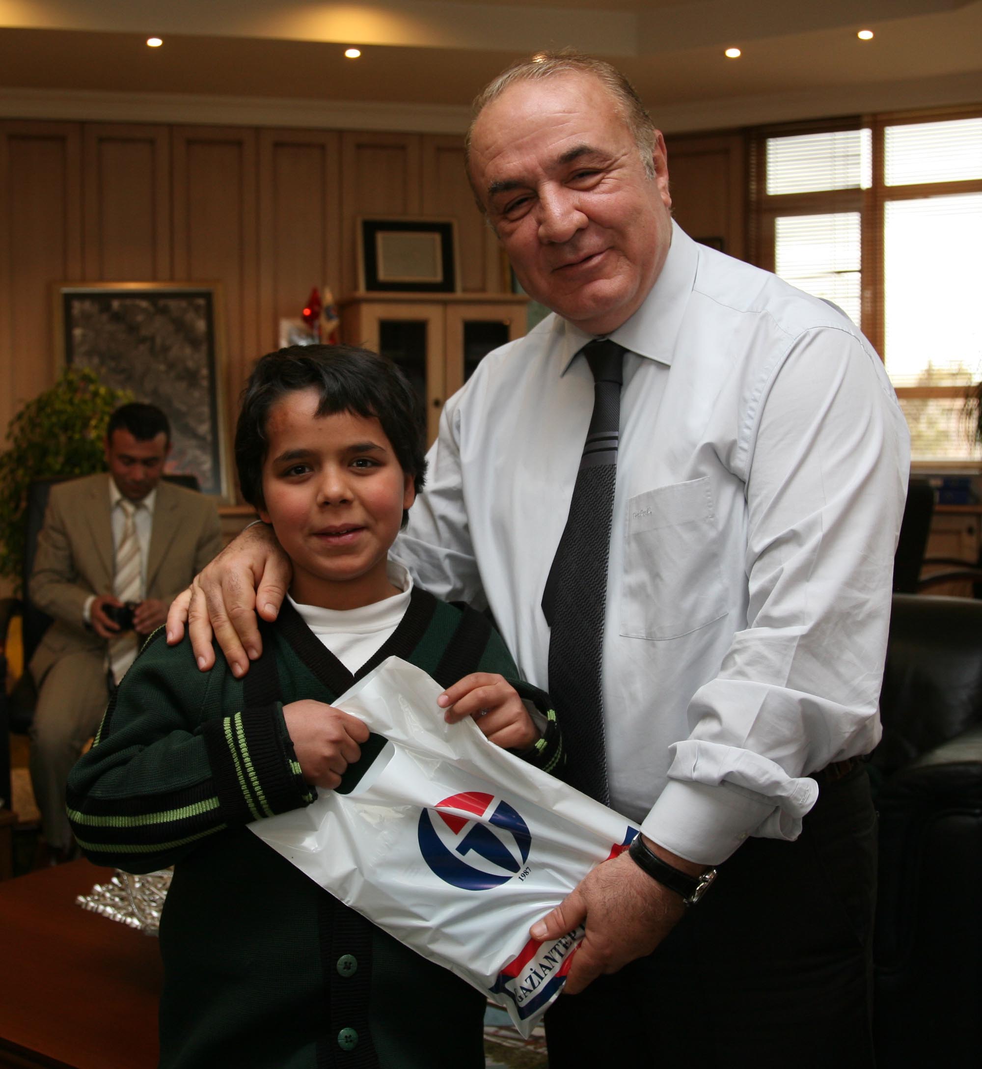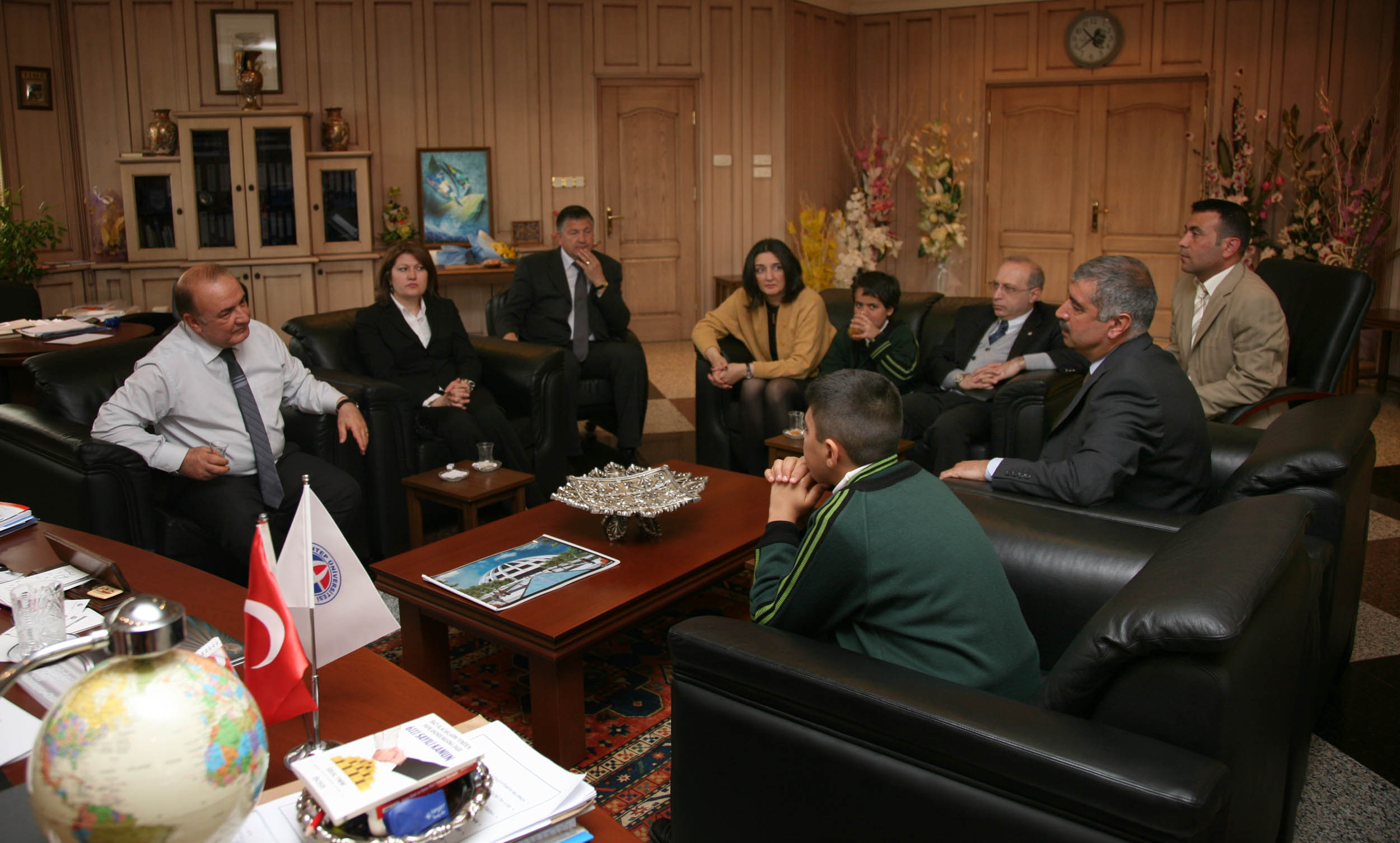 23 Nisan Ulusal Egemenlik ve Çocuk Bayramı nedeniyle, Aslı Alevli İlköğretim Okulu öğrencileri Esma Kamburoğlu, Bedirhan Ebren ve Eda Kıratlı ile okul yöneticileri Rektör Prof. Dr. M. Yavuz Coşkun’u makamında ziyaret ettiler.