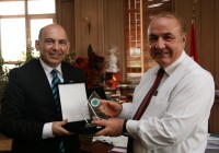 Ali Kamil Uzun tarafından Rektör Prof. Dr. M. Yavuz Coşkun’a plaket takdim edildiği ziyarette, Rektör Prof. Dr. Coşkun tarafından ise panalistlere hediye takdim edildi.