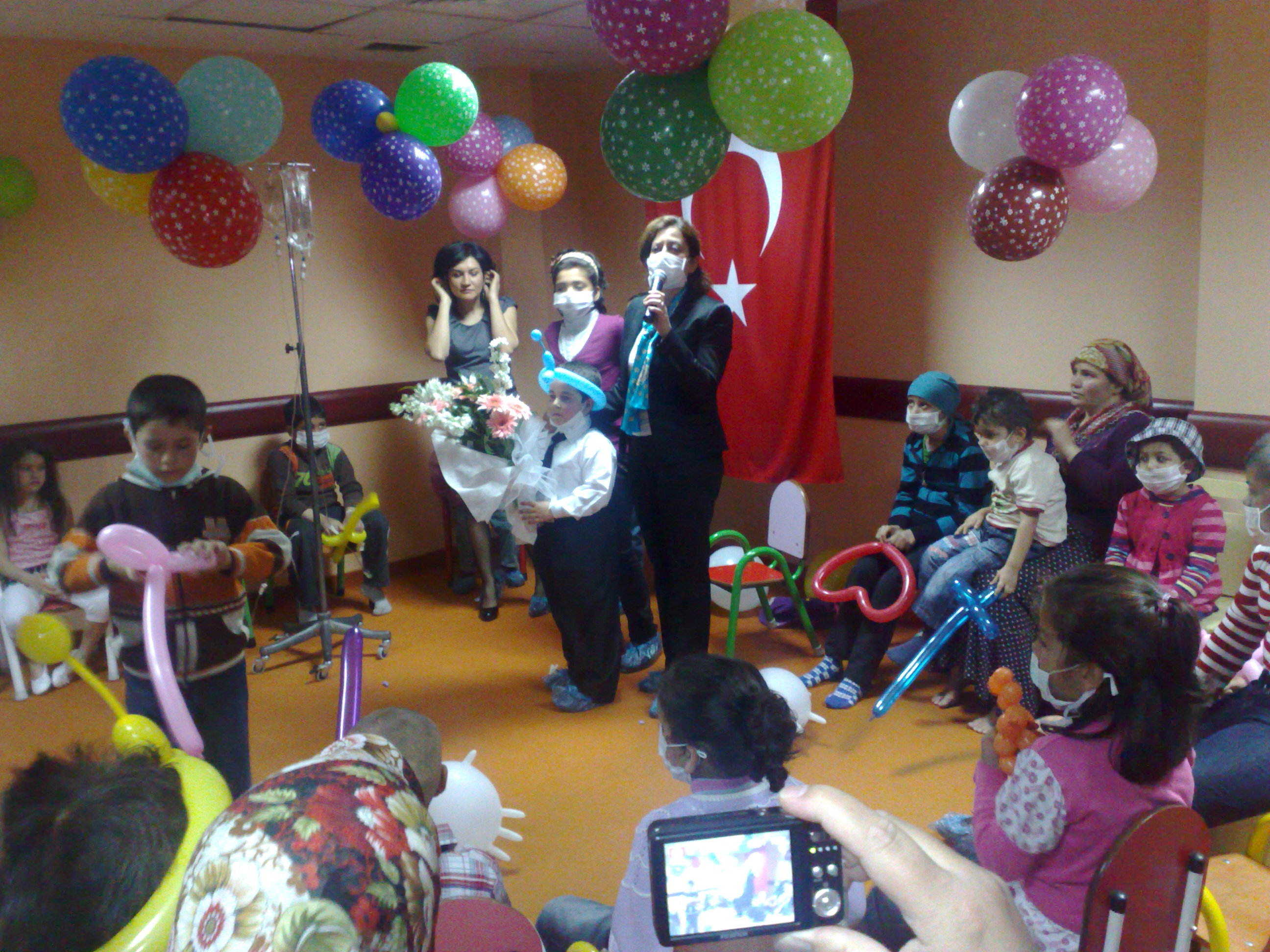 Birbirinden renkli etkinliklerle doyasıya eğlenen çocuklar, Türk Bayrağı ve balonlarla süslenen pediatrik onkoloji ve hematoloji servisinde Üniversiteli Kadınlar Derneği tarafından getirilen hediyeler ve ikramlarla mutlu bir gün geçirdiler.
