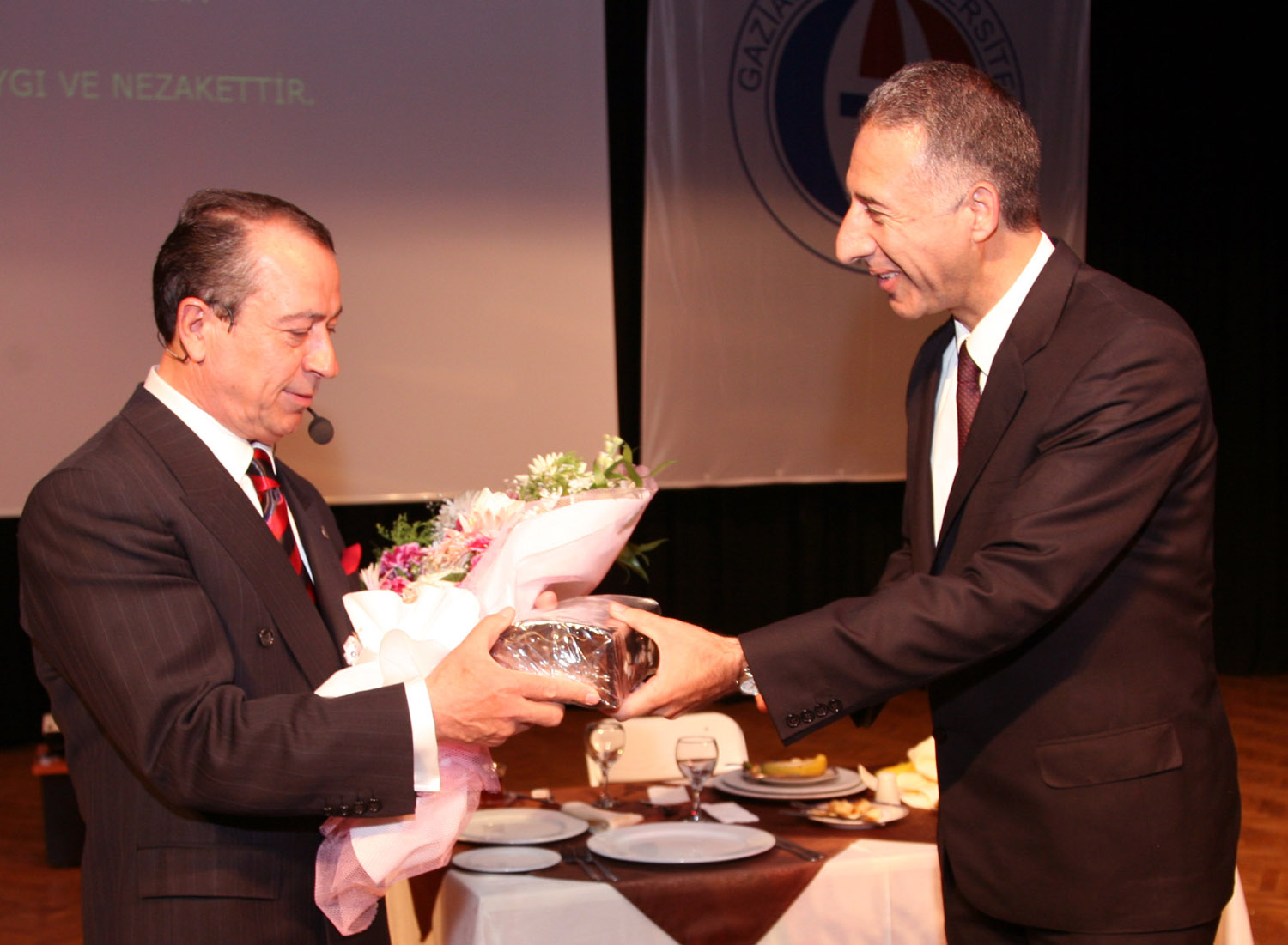 Konferansın sonunda Gaziantep Üniversitesi Rektör Yardımcısı Prof. Dr. Fahrettin Göğüş tarafından, Türkiye ve Orta Doğu Amme İdaresi Enstitüsü Öğretim Elemanı Nihat Aytürk’e hediye ve çiçek takdim edildi.