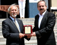 Söyleşinin sonunda Şair Mehmet Kara’ya Nizip Gazeteciler Cemiyeti Başkanı Veysel Karayılan tarafından Bahar Şenlikleri anısına plaket takdim edildi.