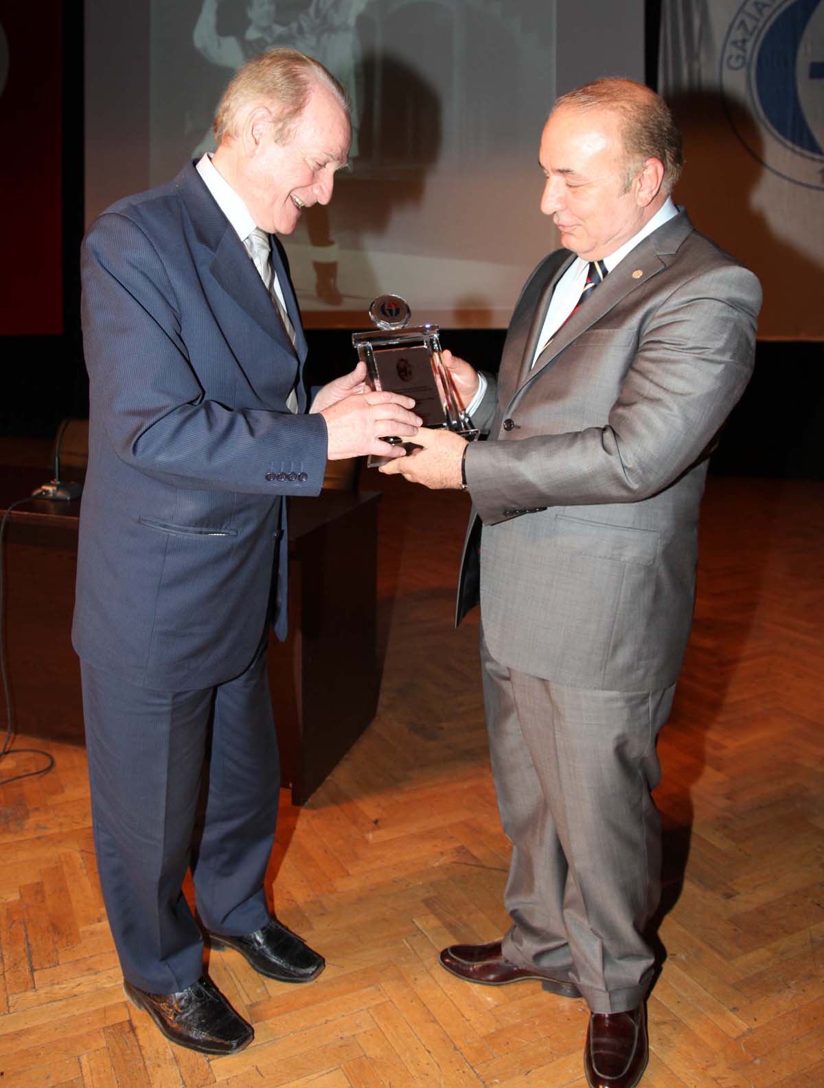Söyleşinin sonunda Üniversitemiz Rektörü Prof. Dr. M. Yavuz Coşkun tarafından Teoman Yazgan’a Bahar Şenlikleri anısına, üniversitemizde gerçekleştirdiği söyleşiden dolayı plaket takdim etti.