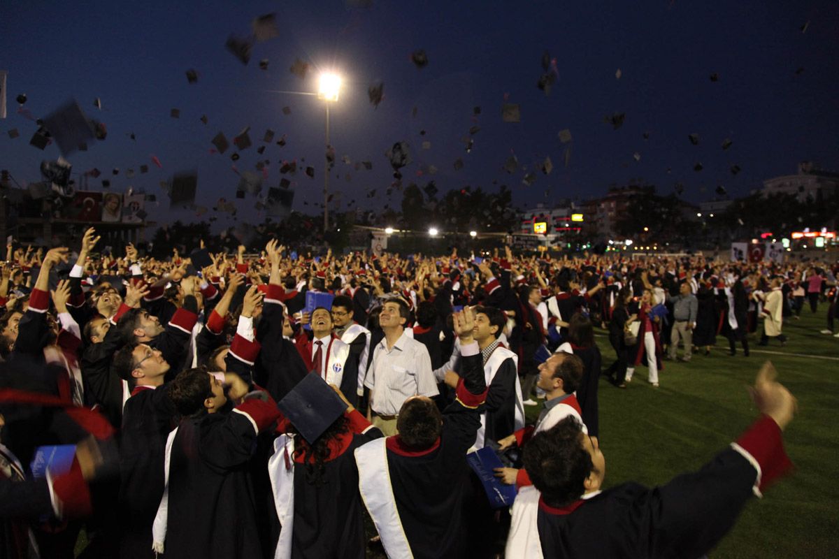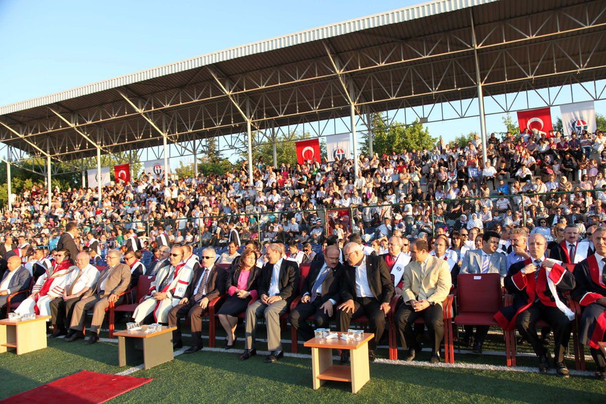 Mezun olan öğrencilerimiz, keplerini fırlatarak mezun olmanın sevincini yaşadı. Tören sonrasında Üniversitemiz Çobanevi Sosyal Tesislerinde Üniversitemizin kuruluşunun 24’üncü yıldönümü nedeniyle kuruluş kokteyli düzenlendi.