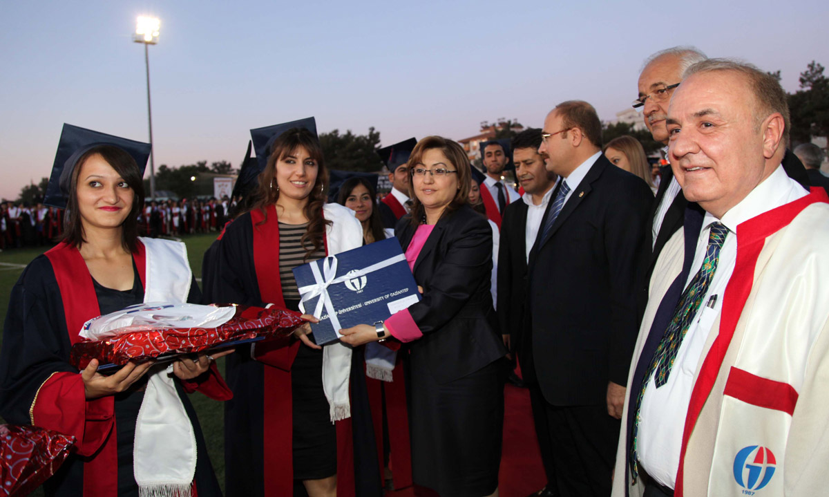 Konuşmaların sonrasında kendi bölümlerinde dereceye giren öğrencilere Gaziantep Valisi Süleyman Kamçı, Gaziantep Üniversitesi Rektörü Prof. Dr. M. Yavuz Coşkun, Gaziantep Milletvekilleri Fatma Şahin, Derya Bakbak, Mehmet Erdoğan, Mehmet Sarı, Nejat Koçer, Ali Şahin, Gaziantep eski milletvekili Hasan Özdemir, Zirve Üniversitesi Rektörü Prof. Dr. Adnan Kısa, Gazikent Üniversitesi Rektörü Prof. Dr. İbrahim Özdemir, YÖK Denetleme Kurulu Üyeleri Prof. Dr. Sacit Önen ve Prof. Dr. Haluk Özyörük, Gaziantep Üniversitesi Rektör Yardımcıları Prof. Dr. Fahrettin Göğüş ve Prof. Dr. Mehmet Koruk, Rektör Danışmanı Prof. Dr. Cahit Bağcı, Şahinbey Belediye Başkanı Mehmet Tahmazoğlu, Üniversitemiz Genel Sekreteri Ercan Eroğlu tarafından diplomaları ve çeşitli hediyeler verildi.