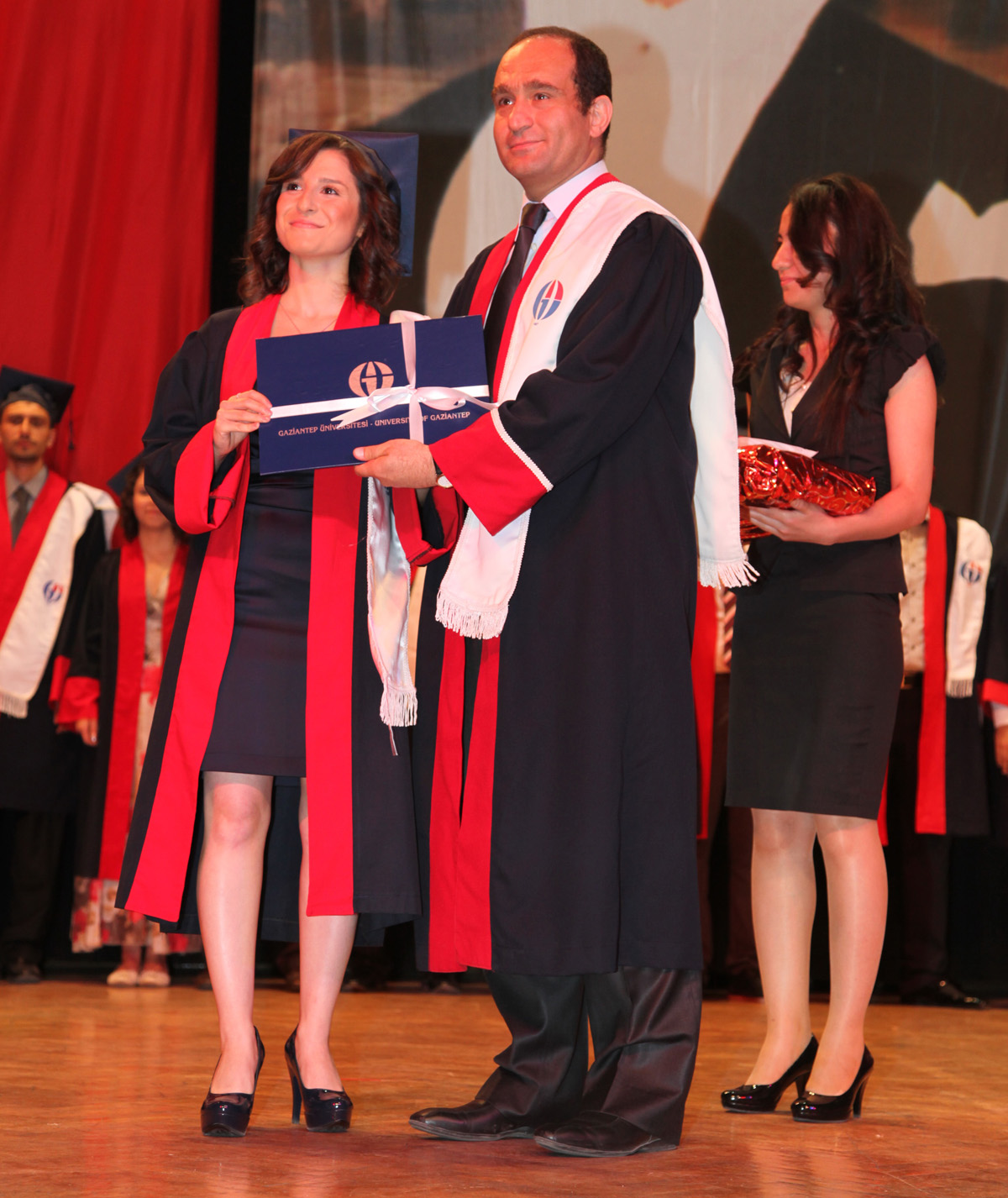 Üniversitemiz Tıp Fakültesi Öğretim Üyesi Prof. Dr. Ergin Dülger tarafından mezunlara hekimlik andının okutulmasının sonrasında Tıp Fakültesi birincisi Dr. Yurdagül Tolu’ya Gaziantep Üniversitesi Rektörü Prof. Dr. M. Yavuz Coşkun tarafından, ikinci Dr. Esra Çörekli’ye Tıp Fakültesi Dekanı Prof. Dr. Abdurrahman Kadayıfçı tarafından, üçüncü Fikri Şirin’e ise Rektör Yardımcısı Prof. Dr. Mehmet Koruk tarafından diploma ve hediye takdim edildi.