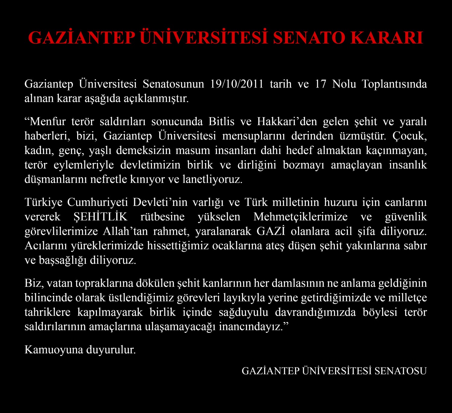 GAZİANTEP ÜNİVERSİTESİ SENATOSU’NDAN KINAMA