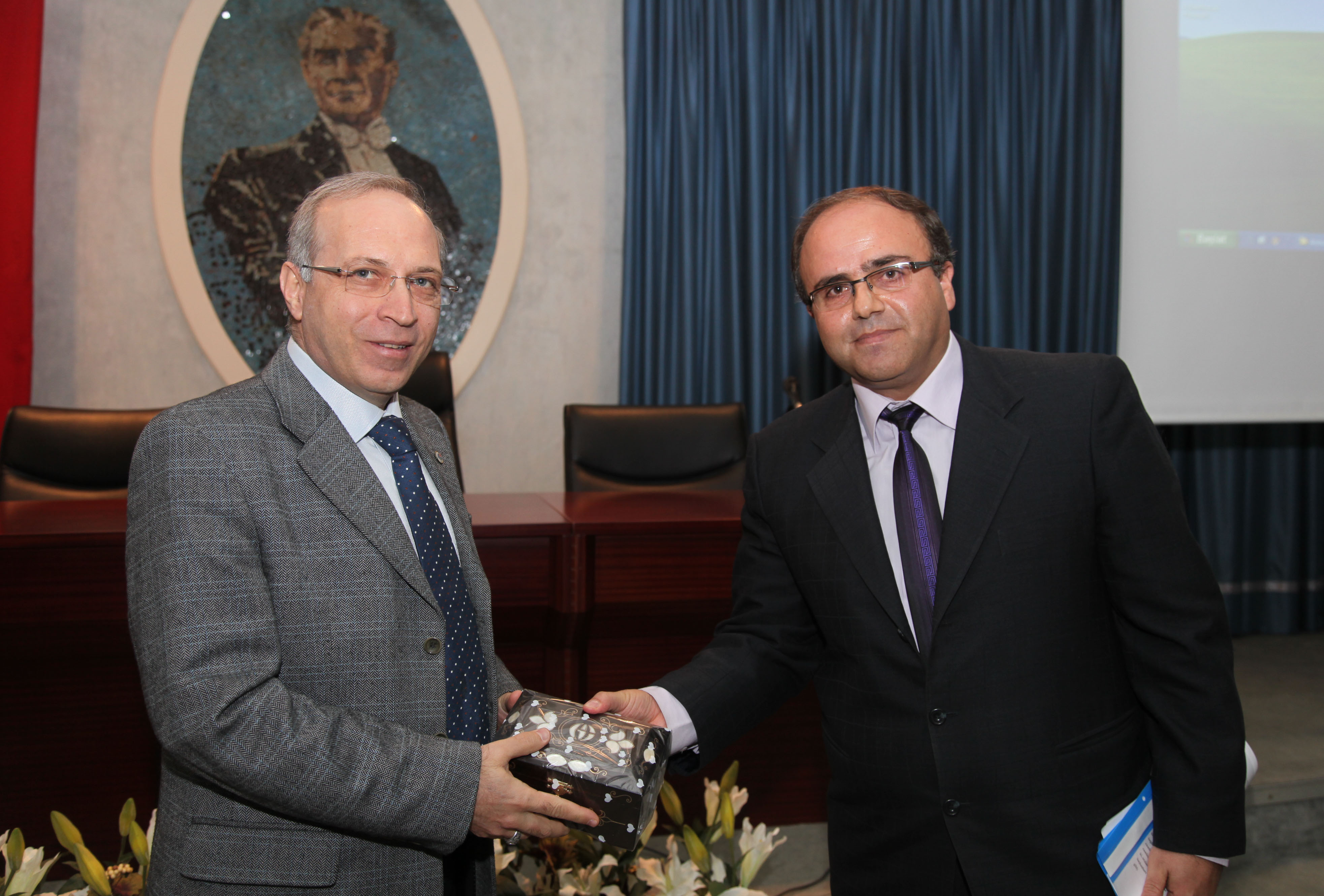 Konferansın sonunda Gaziantep Üniversitesi Rektör Yardımcısı Prof. Dr. Mehmet Koruk tarafından, konuşmacı Fen – Edebiyat Fakültesi Tarih Bölümü Öğretim Üyesi Yrd. Doç. Dr. Murat Çelikdemir’e hediye takdim edildi.