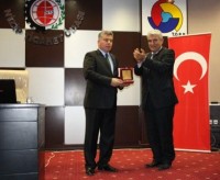 Konferansın sonunda Gaziantep Üniversitesi Nizip Eğitim Fakültesi Dekanı Prof. Dr. Mehmet Özaslan tarafından çalışmalarından dolayı Nizip Ticaret Odası Yönetim Kurulu Başkanı Mehmet Özyurt’a plaket, Nizip Ticaret Odası Yönetim Kurulu Başkan Yardımcısı Bekir Karabacak tarafından ise çiçek takdim edildi.