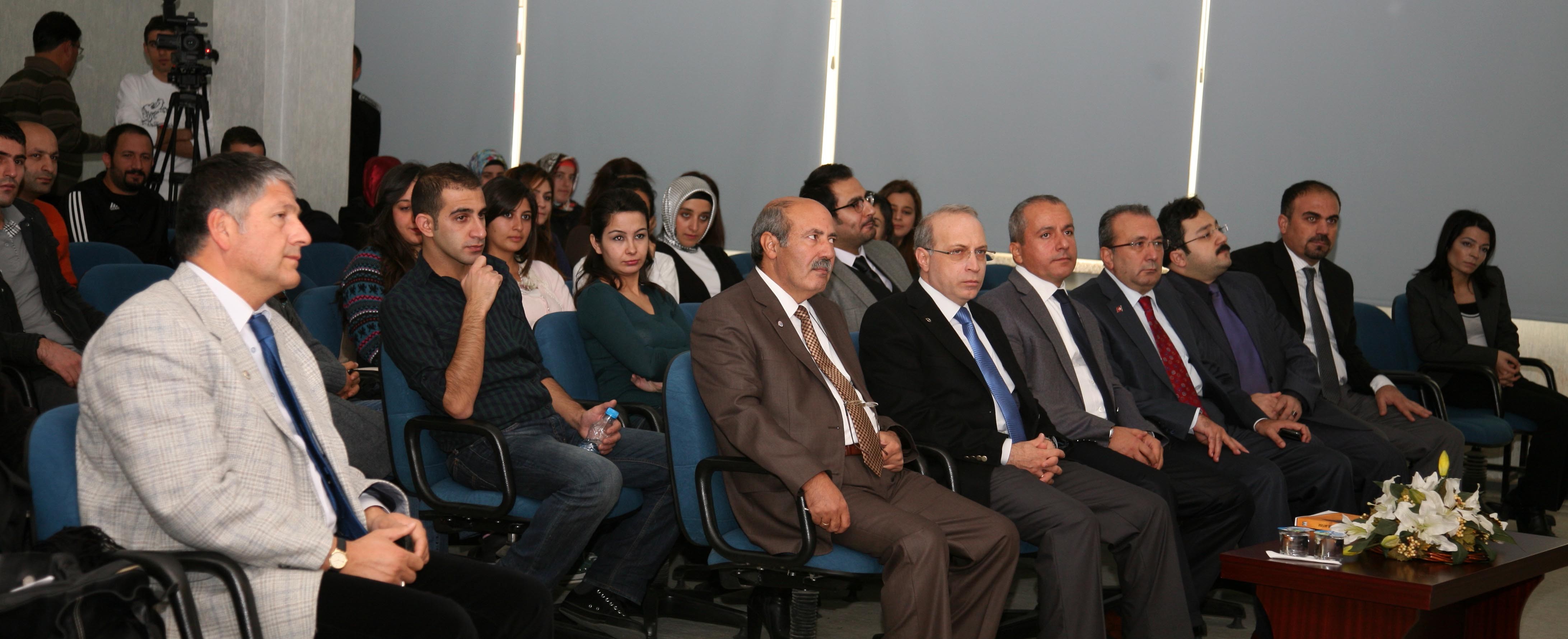 Üniversitemiz Fen – Edebiyat Fakültesi Ömer Asım Aksoy Konferans Salonunda düzenlenen söyleşiye; Gaziantep Üniversitesi Rektör Yardımcısı Prof. Dr. Mehmet Koruk, Şehitkamil Kaymakamı Mehmet Aydın, Üniversitemiz Genel Sekreteri Ercan Eroğlu ve çok sayıda öğrenci katıldı.