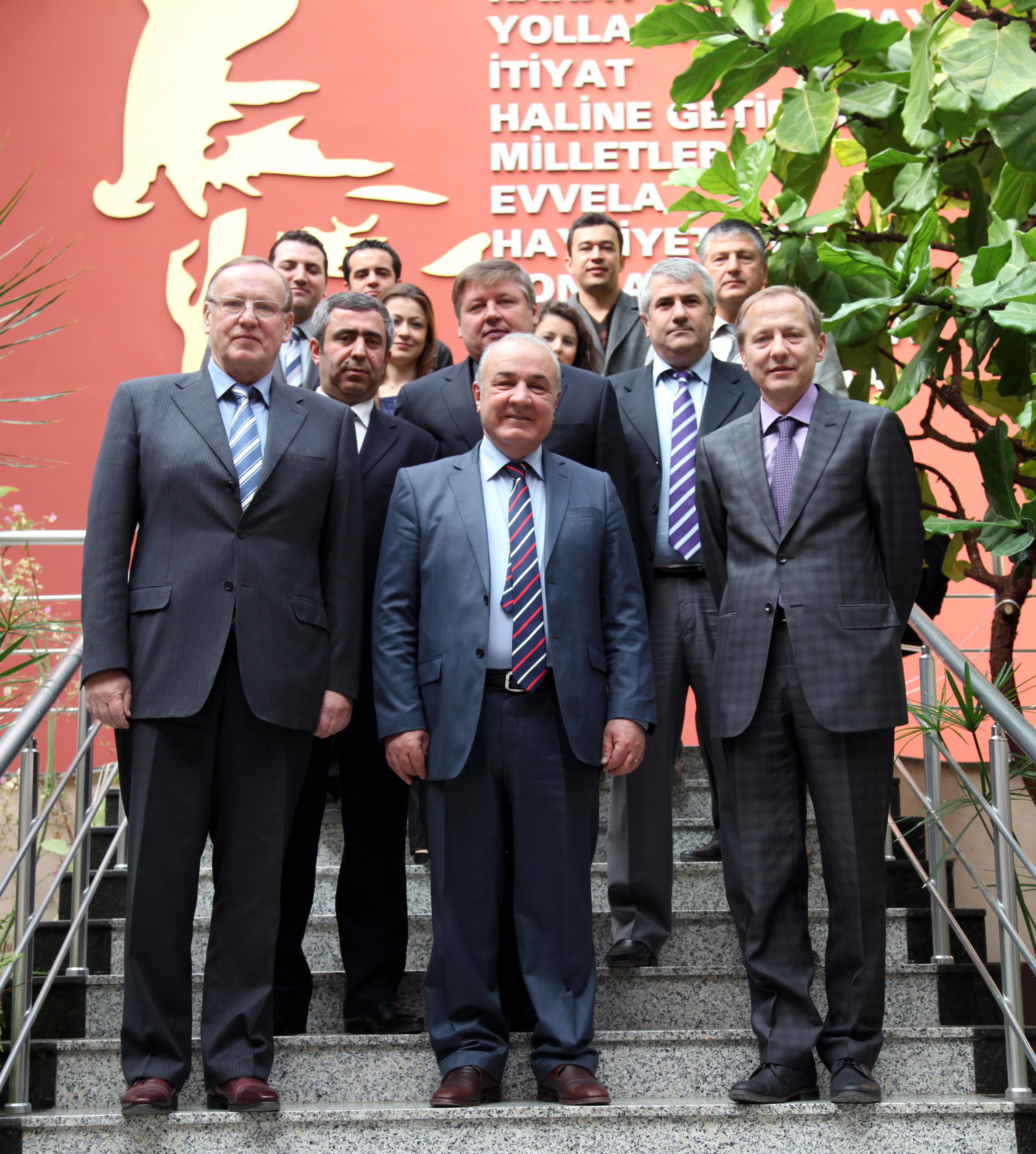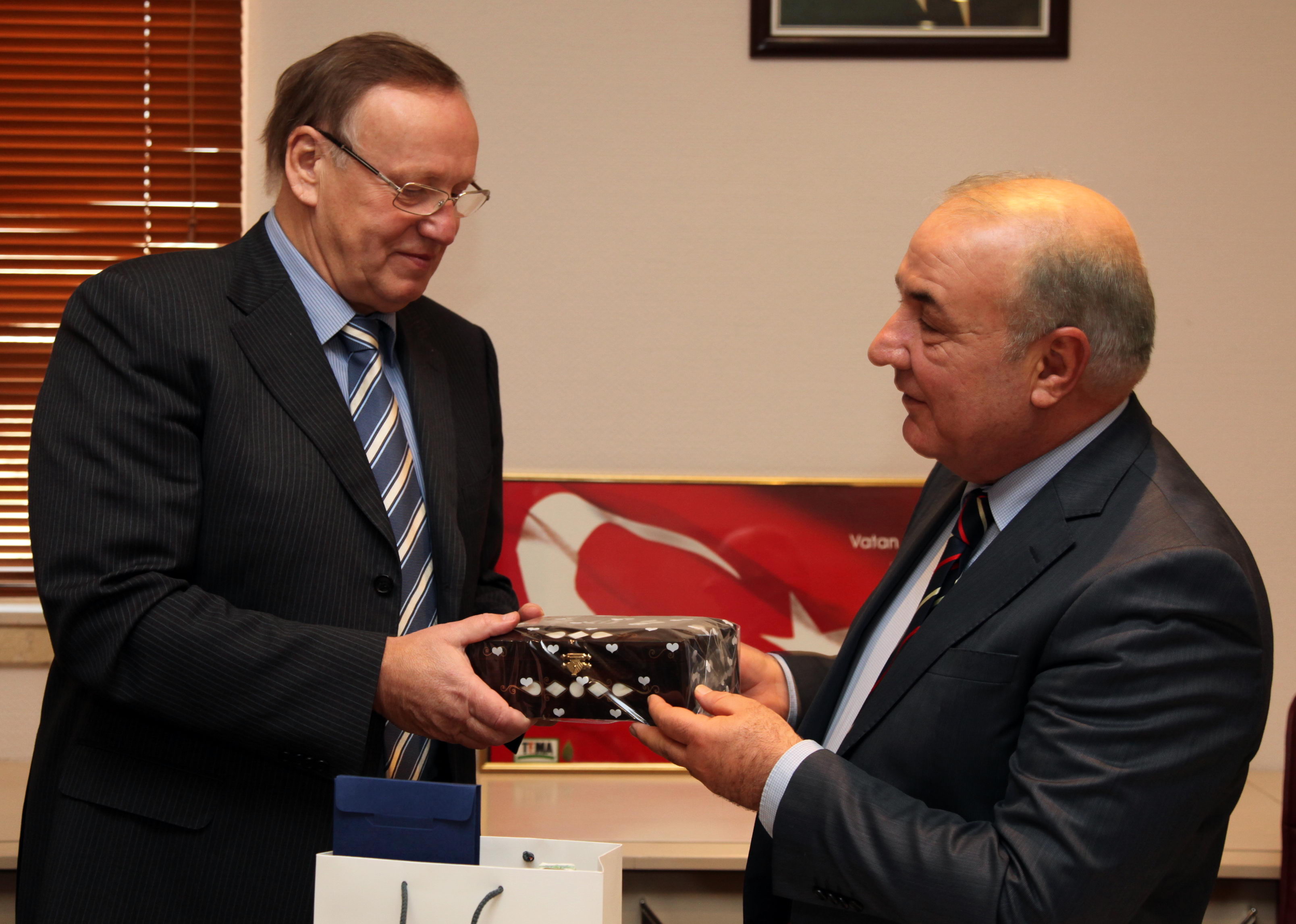 Protokol töreni sonrasında Üniversitemiz rektörü Prof. Dr. M. Yavuz Coşkun tarafından V.N. Karazin Kaharkiv National Üniversitesi Rektör Prof. Vil S. Bakirov’a hediye takdim edildi.