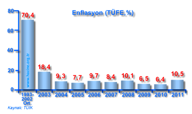 Kaynağın TCMB, EVDS olduğunu belirten Yrd. Doç. Dr. Şahbaz, “2003 sonrası dönemde TL’nin değer saklama özelliğini sağlayan önemli parametrelerden bir tanesi zaman içerisinde TL’nin yabancı paralar karşısında daha istikrarlı bir seyir takip etmesidir. 2001 krizini müteakip uygulanan sıkı para ve maliye politikalarının bir sonucu olarak, enflasyon 2004 yılında tek haneli rakamlara indirilmiştir. Yüksek enflasyonlu bir yaşamı alışkanlık haline getirmiş bir ülke için azımsamayacak önemde bir başarıdır. Bu bağlamda enflasyon oranlarının tek haneli rakamlara inmesi, TL’nın yabancı paralar karşısında değer kaybının önüne set çekmiştir” diye konuştu.