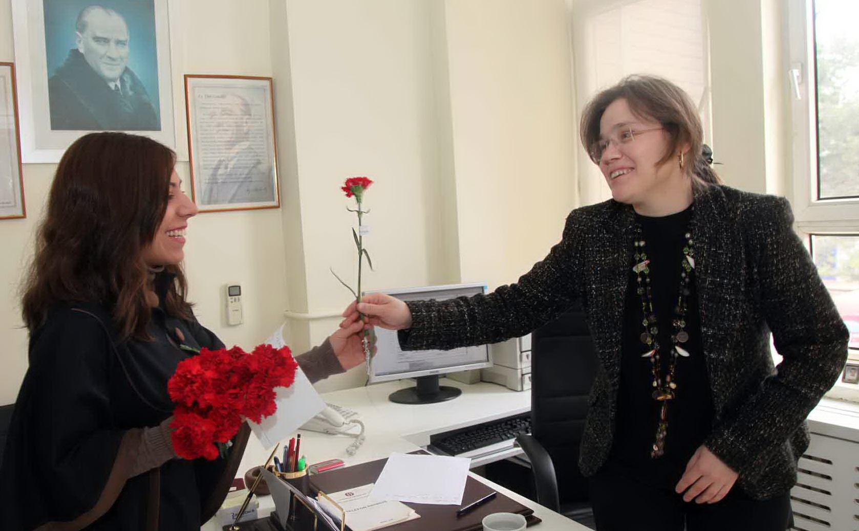 Üniversitemiz Rektörü Prof. Dr. M. Yavuz Coşkun’un bayanlara karanfil hediye etmesinin, çok ince bir düşünce olduğunu belirten Üniversitemiz bayan personelleri, kadınların bu anlamlı günde hatırlanmasının kendilerini mutlu ettiğini söyleyerek, Rektörümüz Prof. Dr. M. Yavuz Coşkun’a teşekkür ettiler.