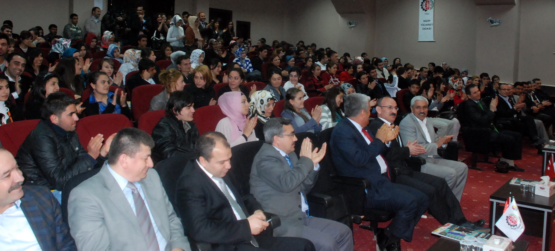 Nizip Ticaret Odası Konferans Salonunda gerçekleşen konferansa; Nizip Eğitim Fakültesi Dekanı Prof. Dr. Mehmet Özaslan, Nizip Kaymakamı Yaşar Karadeniz, Nizip Emniyet Müdürü Mustafa Kantar, Nizip Ticaret Odası Başkanı Mehmet Özyurt, Nizip Ticaret Odası Yönetim Kurulu Üyeleri, Nizip Eğitim Fakültesi ve Nizip Meslek Yüksekokulu öğrencileri katıldı.