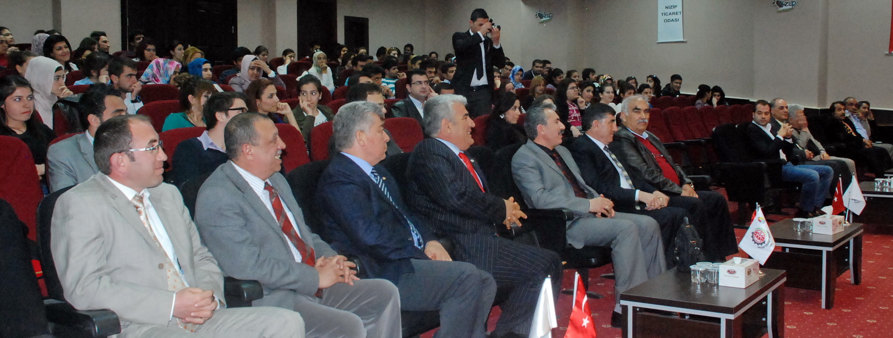 Nizip Ticaret Odası Konferans Salonunda düzenlenen konferansa; Nizip Eğitim Fakültesi Dekanı Prof. Dr. Mehmet Özaslan, SGK Müdürü Mustafa Aydoğdu, Nizip Ticaret Odası Başkanı Mehmet Özyurt, Nizip Ticaret Odası Yönetim Kurulu Üyeleri, bazı dernek ve oda başkanları, Nizip Eğitim Fakültesi ve Nizip Meslek Yüksekokulu öğrencileri katıldı.