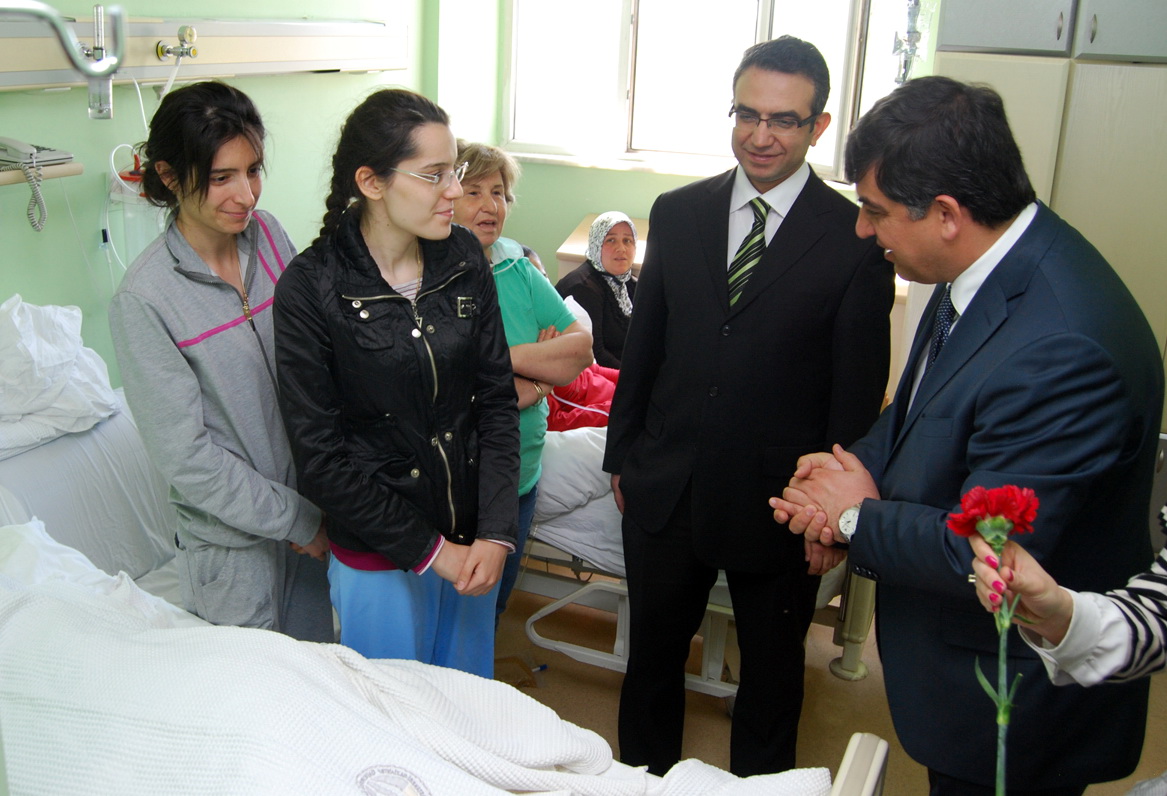 Şehitkamil Belediye Başkanı Rıdvan Fadıloğlu, AK Parti İlçe Başkanı Hasan Coşkun, AK Parti Şehitkamil İlçe Kadın Kolları Başkanı Hülya Kılıç, AK Parti Şehitkamil İlçe Gençlik Kolları Başkanı Feyzullah Kılıç ile AK Parti İlçe Yönetim Kurulu Gaziantep Üniversitesi Onkoloji Hastanesinde tedavi gören hastalara moral ziyaretinde bulundu.