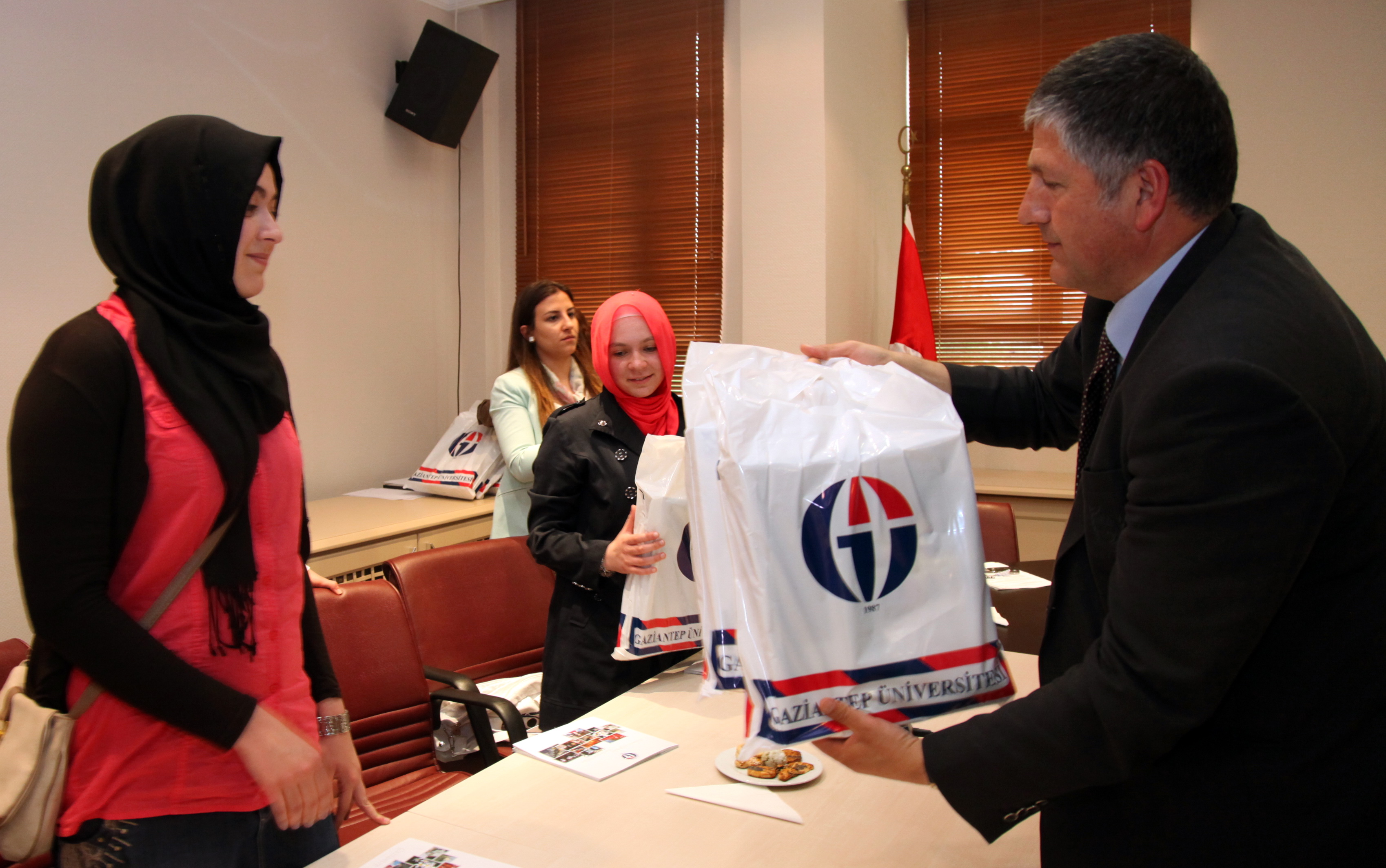 Tanıtım toplantısının sonunda Üniversitemiz Genel Sekreteri Ercan Eroğlu, İktisadi ve İdari Bilimler Fakültesi Öğretim Üyesi ve İslahiye Meslek Yüksekokulu Müdürü Yrd. Doç. Dr. Metin Yıldırım tarafından konuklara hediye takdim edildi.