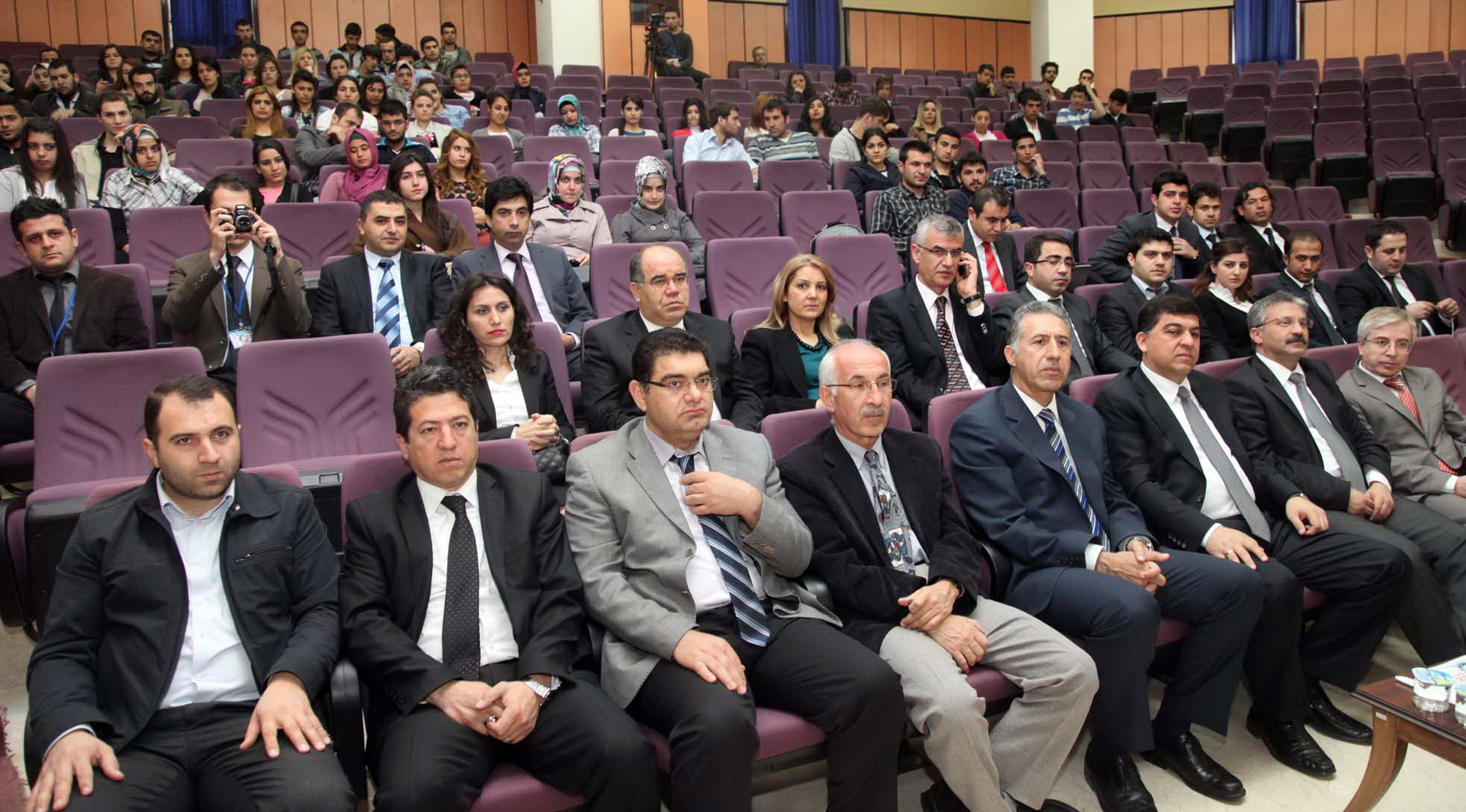 Üniversitemiz İnşaat Mühendisliği Bölümü Konferans Salonunda gerçekleştirilen konferansa; Gaziantep Üniversitesi Rektör Yardımcısı Prof. Dr. Fahrettin Göğüş, Üniversitemiz Rektör Danışmanı Prof. Dr. Mehmet Özaslan, çok sayıda akademik ve idari personel ile öğrenci katıldı.