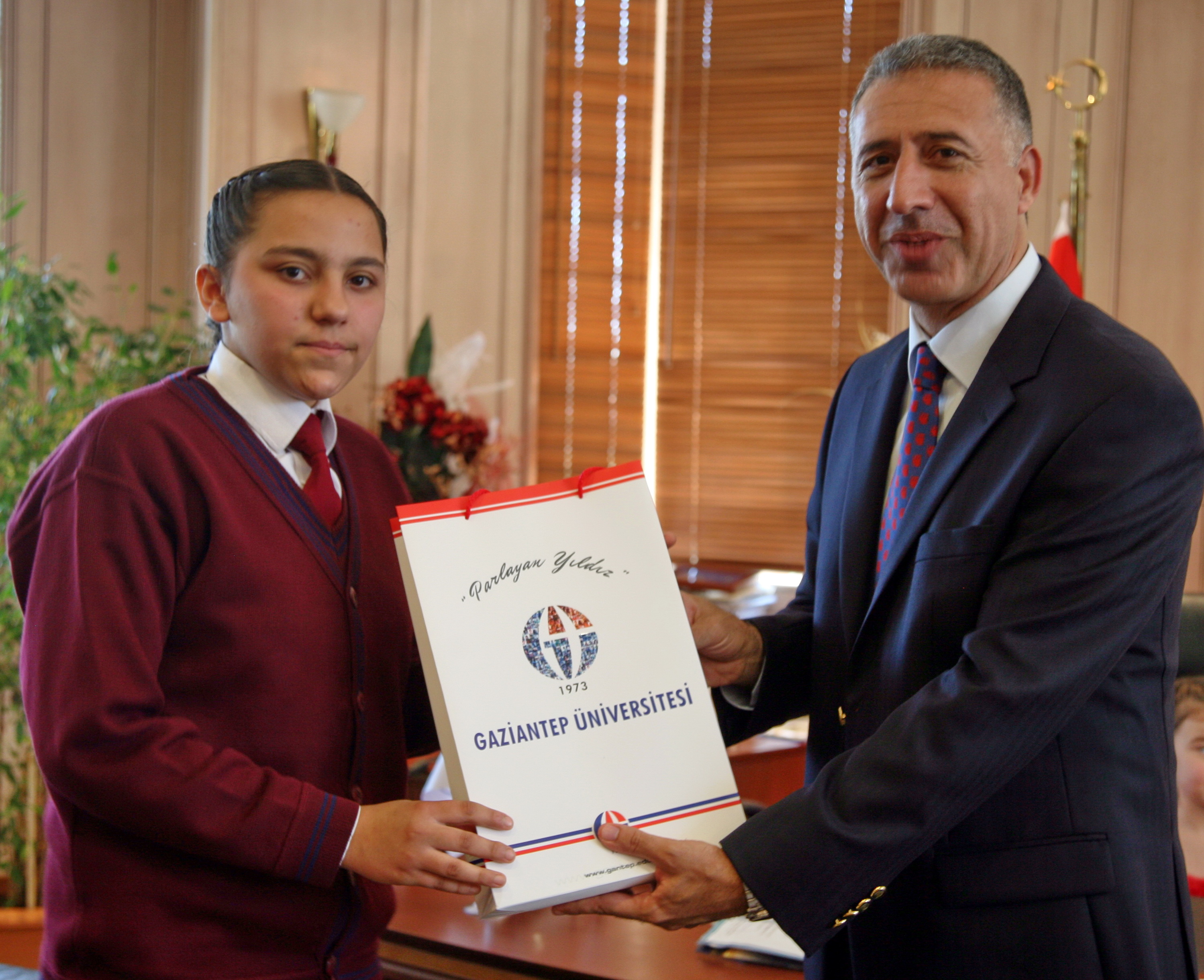 Ziyaretin sonunda Prof. Dr. Fahrettin Göğüş tarafından Rektör Prof. Dr. M. Yavuz Coşkun’un koltuğuna oturan Şehit Mahmut Söylemez İlköğretim Okulu 8. Sınıf öğrenci Leyla Söylemez’e hediye verildi.