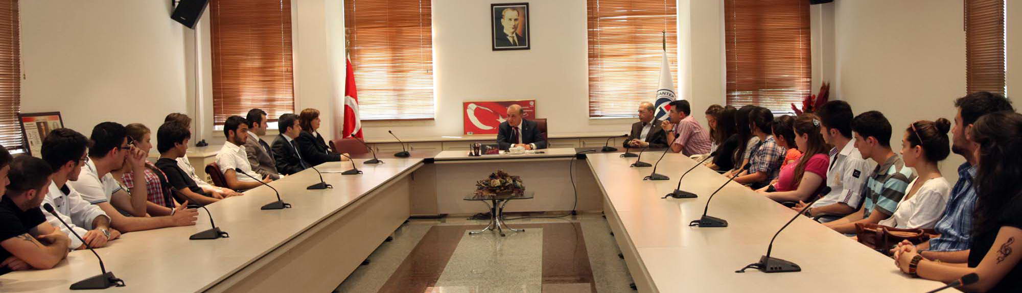 Senato salonunda gerçekleşen toplantıya; Rektör Prof. Dr. M. Yavuz Coşkun, Rektör Yardımcısı Prof. Dr. Mehmet Koruk, Yabancı Diller Yüksekokulu Müdürü Yrd. Doç. Dr. Birsen Bahçeci ve İrlanda’ya gidecek öğrenciler katıldı.
