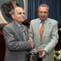 Toplantının sonunda Gaziantep Üniversitesi adına Şehitkamil Kaymakamı Mehmet Aydın tarafından Hasan Konuk’a hediye takdim edildi.