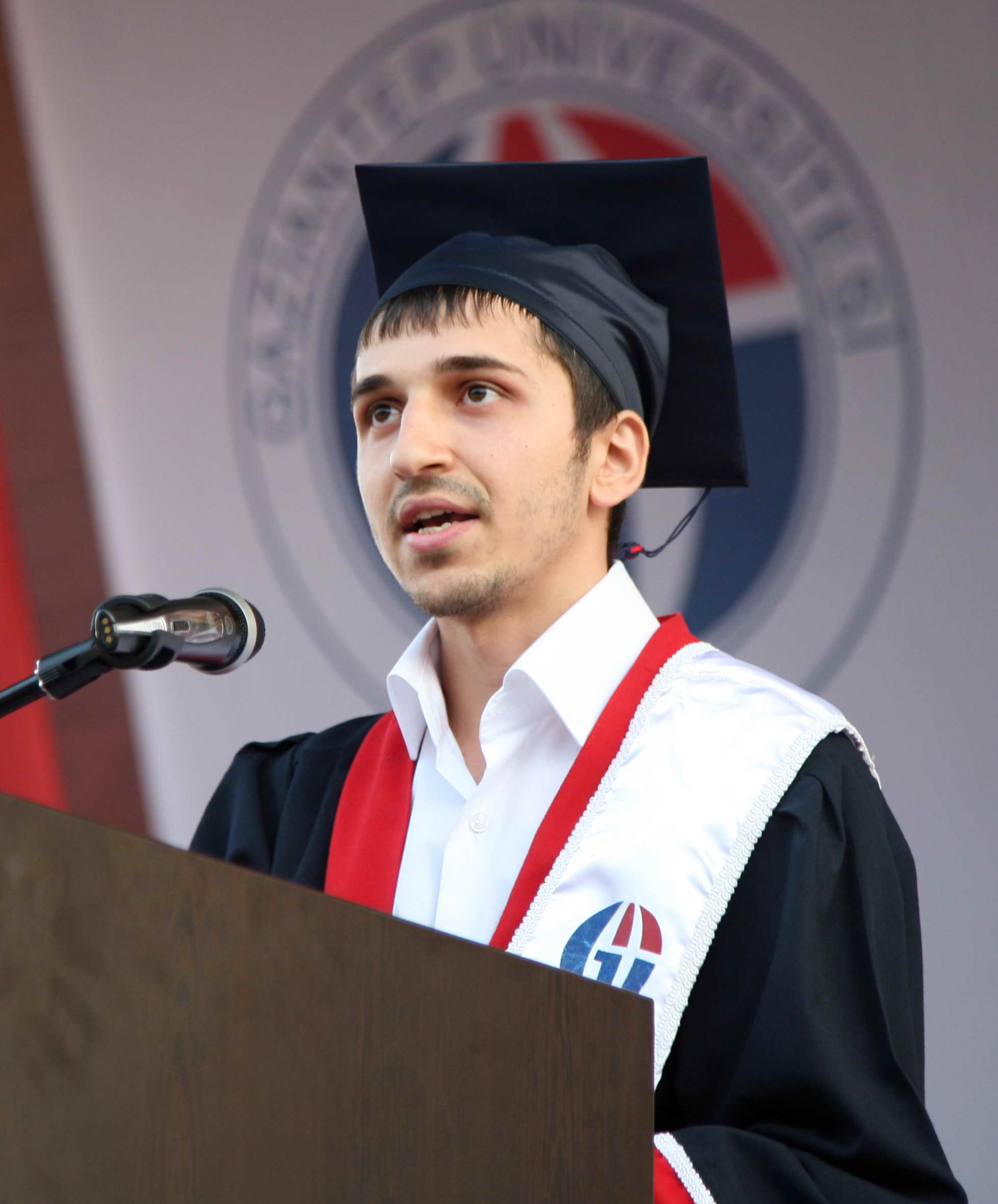 Mezun öğrenciler adına konuşan Gaziantep Üniversitesi Gaziantep Meslek Yüksekokulu birincisi Halil Sezen, “Bu güzide mezuniyet töreninde bulunmaktan arkadaşlarımın başarılarını birlikte kutlamaktan büyük onur duyuyorum. Ülkemizin, milletimizin geleceğinin aydınlık yüzleri, başarının sırrı azim ve gayrette yatmaktadır. Her zaman hedefinizi belirleyerek yol kat etmeyi öğrenmemiz azmimizi ve gayretimizi hedefimize göre arttıracak ve azim sonrası hedefimize mutlak suretle ulaşmamızı sağlayacaktır” şeklinde konuştu.
