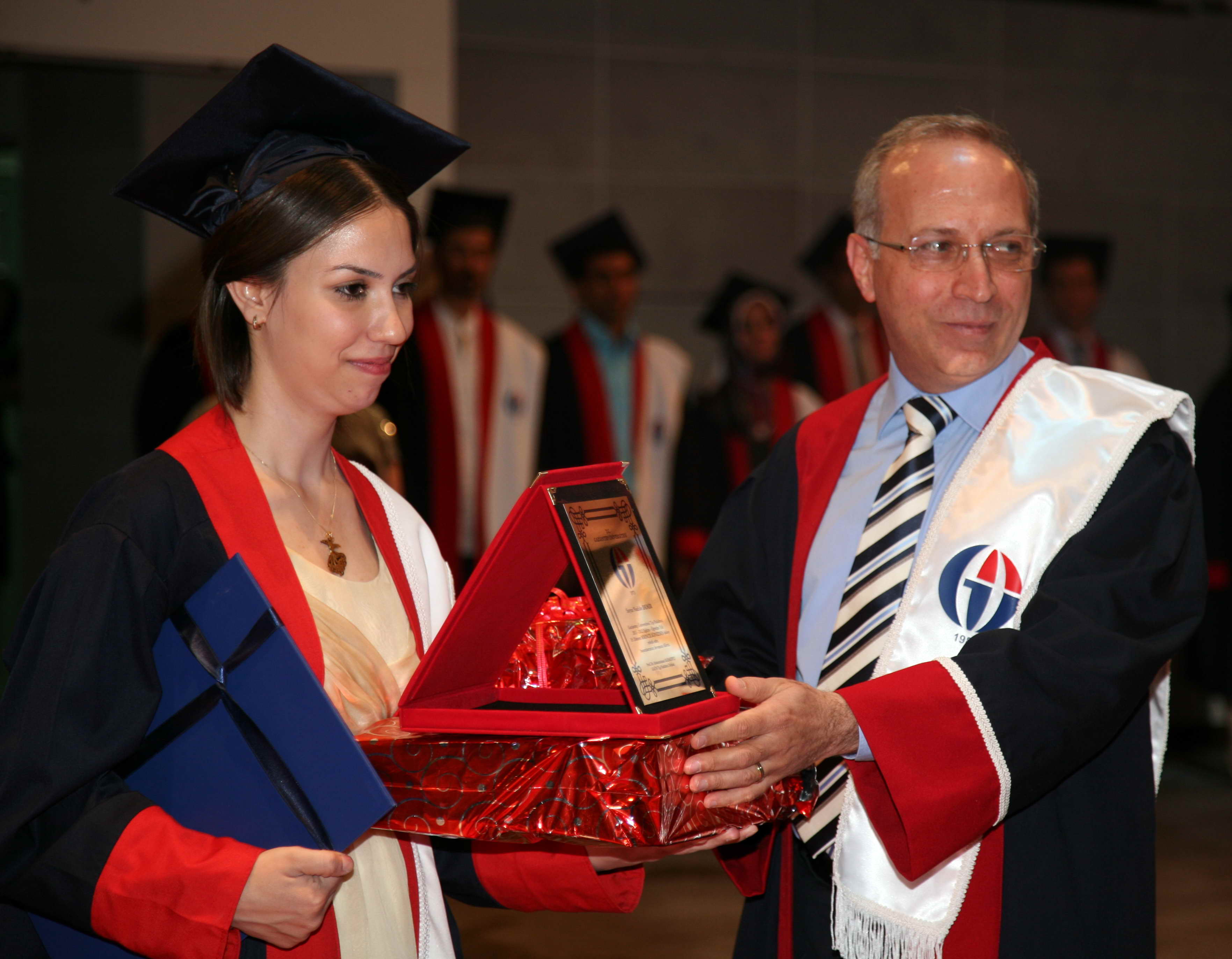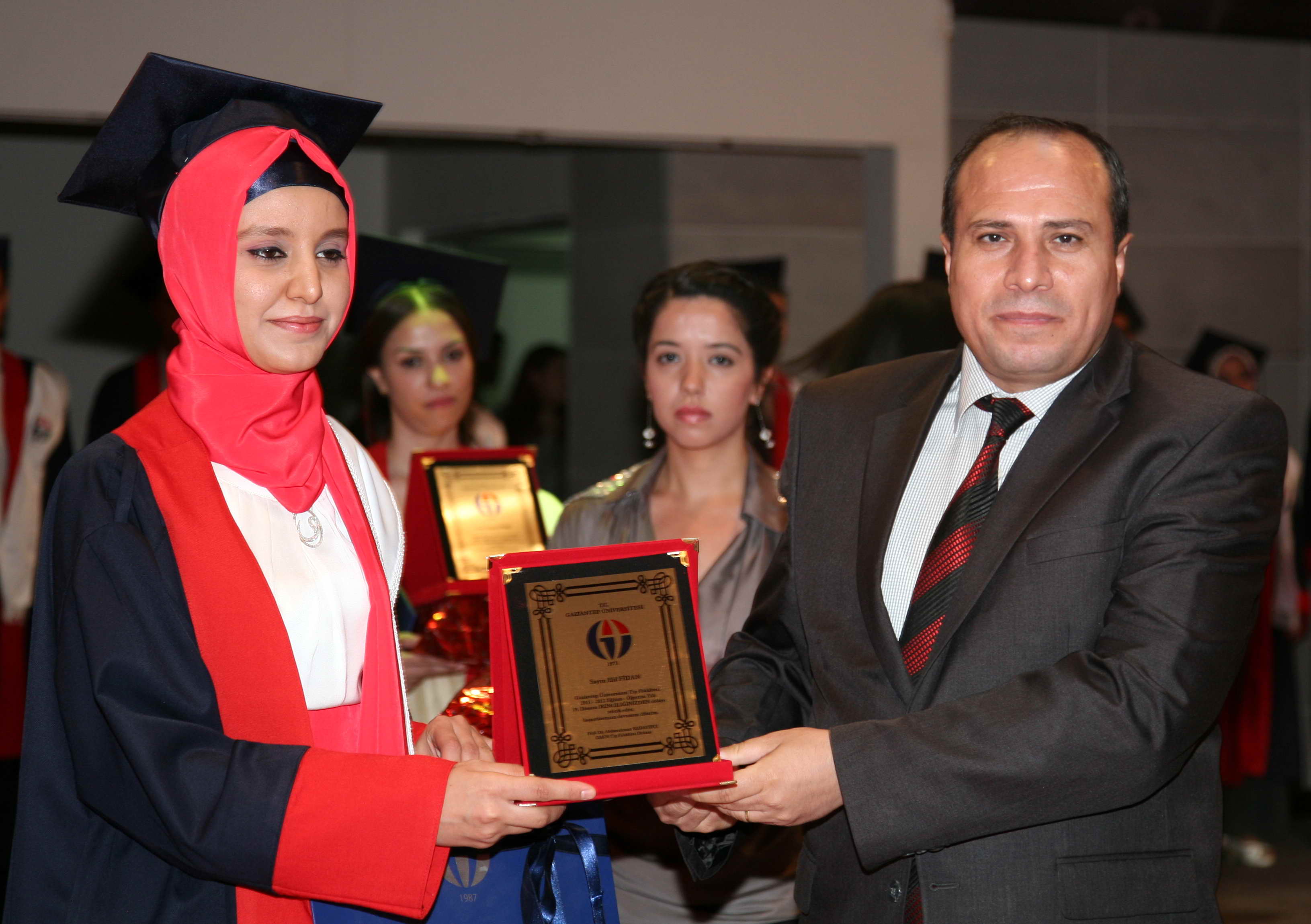 Üniversitemiz Tıp Fakültesi Öğretim Üyesi Prof. Dr. Ergin Dülger tarafından mezunlara hekimlik andının okutulmasının sonrasında Tıp Fakültesi birincisi Dr. Nadide Demir’e Gaziantep Üniversitesi Rektör Vekili Prof. Dr. Mehmet Koruk tarafından, ikinci Dr. Elif Fidan’a Tıp Fakültesi Dekanı Prof. Dr. Abdurrahman Kadayıfçı ve Zirve Üniversitesini temsilen Doç. Dr. Recep Gülşen tarafından, üçüncü Dr. Hüseyin Sarıkaya’ya Rektör Danışmanı Prof. Dr. Cahit Bağcı ve Üniversitemiz Genel Sekreteri Ercan Eroğlu tarafından diploma, plaket ve hediye takdim edilirken, Gaziantep Üniversitesi Tıp Fakültesinin 2011 – 2012 akademik yılı mezunlarına Üniversitemiz Tıp Fakültesi öğretim üyeleri tarafından diplomaları takdim edildi.