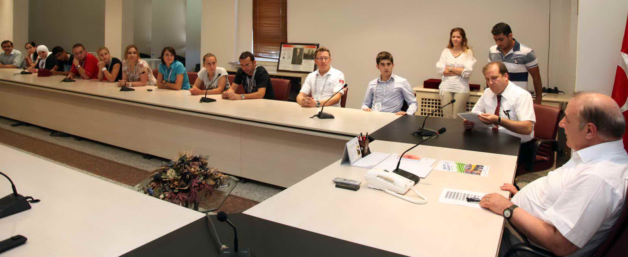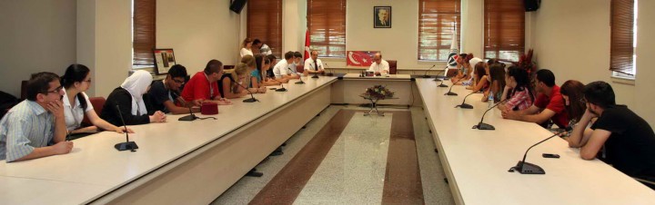 Kültür gezisinden duydukları memnuniyeti iletmek, Gaziantep Üniversitesinin konukseverliğine teşekkür etmek, tekrar Rektörlük görevine seçilen Gaziantep Üniversitesi Rektörü Prof. Dr. M. Yavuz Coşkun’u tebrik etmek amacıyla yurt dışından gelen öğrenciler TÖMER Müdürü Yrd. Doç. Dr. Arif Yılmaz ile birlikte Gaziantep Üniversitesi Rektörü Prof. Dr. M. Yavuz Coşkun’u makamında ziyaret ettiler.