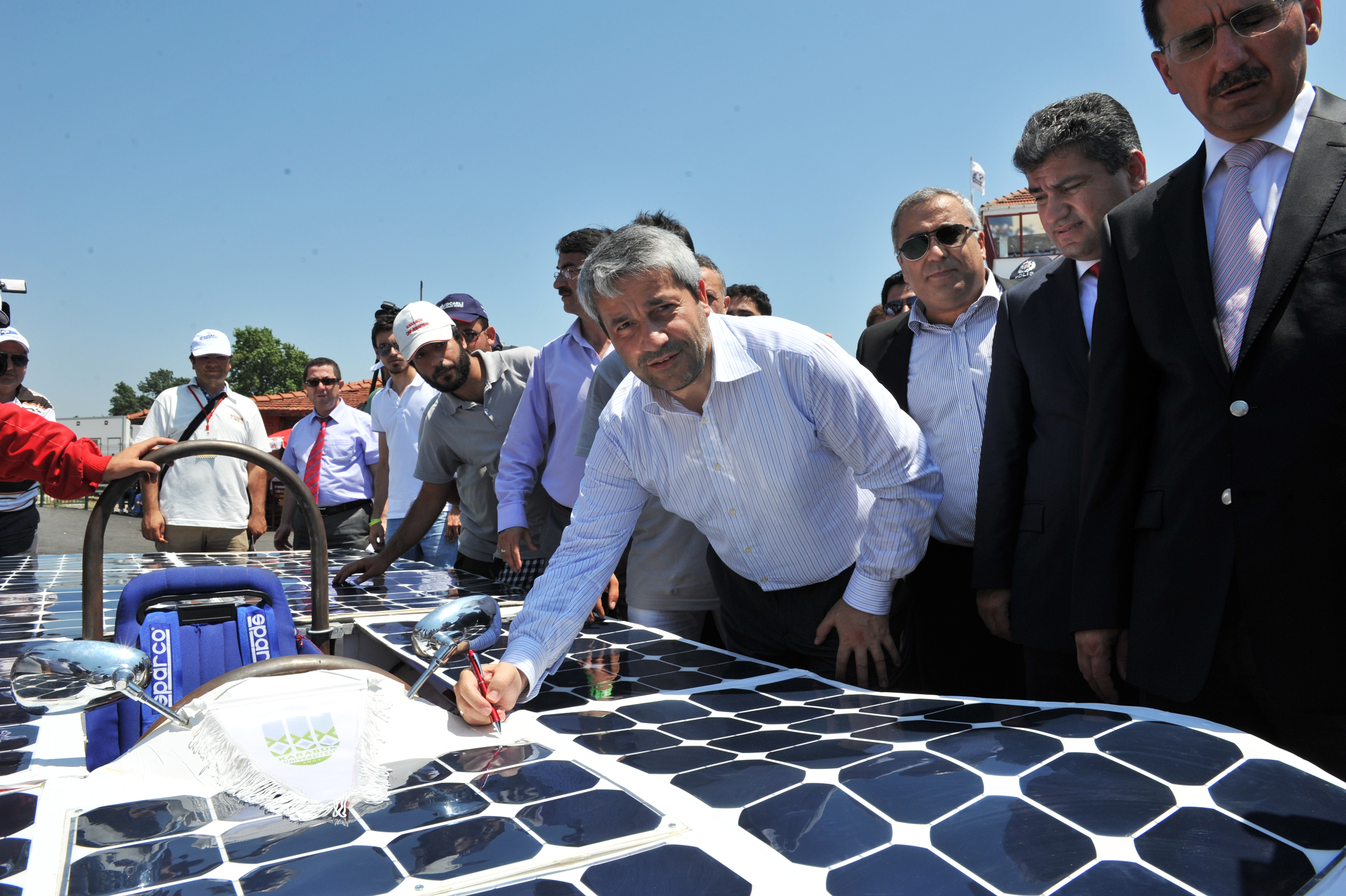 “Güneşten elde ettiğimiz enerjiyi otomotiv sanayisinde de kullanacağız” diyen Bakan Ergün, şöyle konuştu: “Çünkü enerjinin depolanması gibi alanlarda çok ciddi çalışmalar var. Nanoteknoloji çalıştayı düzenledik. Oradaki birçok akademisyen, nanoteknoloji ile enerji üretimi ve depolanması konusundaki çalışmalara değindi. Nanoteknolojideki gelişmelerle birlikte güneşten enerji elde etme hızı daha da artacak. Aynı zamanda çok daha küçük alanlarda, çok büyük enerji depolanması gündeme gelecek. Bunları yapanlar zaten üniversitelerimiz. Üniversitelerimizdeki genç arkadaşlarımız için teknolojilerin geliştirilmesi açısından bu yarışlar önemli. Bu yarışmaları TÜBİTAK olarak her yıl destekliyoruz. Ama önemli olan bir şey daha var, burada bir takım çalışması var, bir pilot oturuyor buraya, yarış yapıyor ama arka planda onun bir takımı var. O teknik çalışmaları, teknolojik çalışmaların yazılımını yapan, optimizasyonu sağlayan, enerjiyi verimli bir şekilde kullanmasını sağlayan bir takım çalışması var. Bu da son derece önemli. Onun için bu yarışlar, bu çalışmalar, hem üniversitedeki genç arkadaşlarımız hem de yeni gelişen teknolojiler için son derece önemli işler.”
