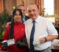 Gaziantep Üniversitesi Rektörü Prof. Dr. M. Yavuz Coşkun, Zehra Özbey’i başarısından dolayı tebrik ederek, Gaziantep Üniversitesi olarak bundan sonra da Zehra Özbey’e gereken tüm imkanların sağlanması noktasında destek vereceklerini söyleyerek, Zehra Özbey ve antrenörü Öğr. Gör. Önder Karakoç’a hediye takdim etti.