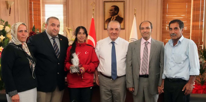 Rektörlük makamında gerçekleştirilen ziyarette Rektör Prof. Dr. M. Yavuz Coşkun, Rektör Yardımcısı Prof. Dr. Ali Gür, sporcunun antrenörlüğünü yapan Beden Eğitimi ve Spor Yüksekokulu öğretim elemanları Öğr. Gör. Önder Karakoç, Zehra Özbey ve ailesi katıldı.