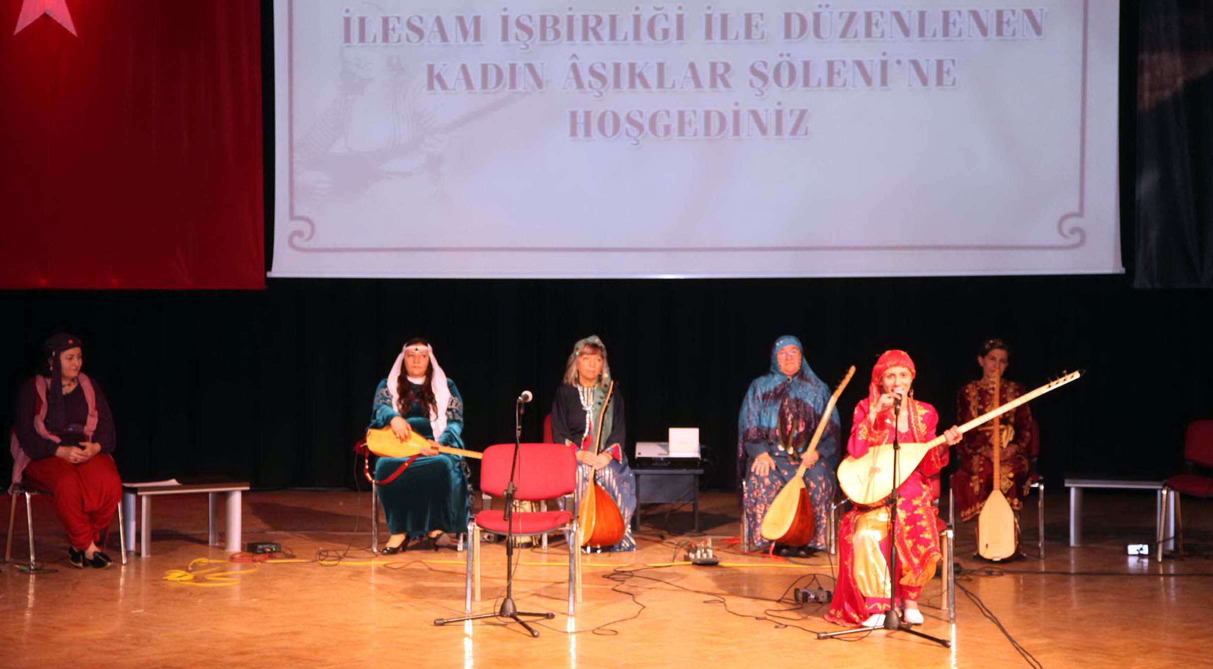 Âşık Gülçınar, Âşık Gülsüm, Âşık Nurşah, Âşık Sarıcakız, Âşık Selvinaz, Âşık Özlemi, Âşık Telli Suna’nın katılımıyla gerçekleşen “Kadın Aşıklar Şöleni”nde, aşıklık geleneğine göre “hoş geldiniz” sunumu salonu dolduranlar tarafından büyük beğeniyle karşılandı. Eğitimci şairler Selçuk Uğur ve Gülseren Sarı’nın şiirleriyle zaman zaman eşlik ettikleri gecede kadın aşıklar gerek taşlamaları gerekse şiir ve türküleriyle unutulmaz bir gece yaşattılar.