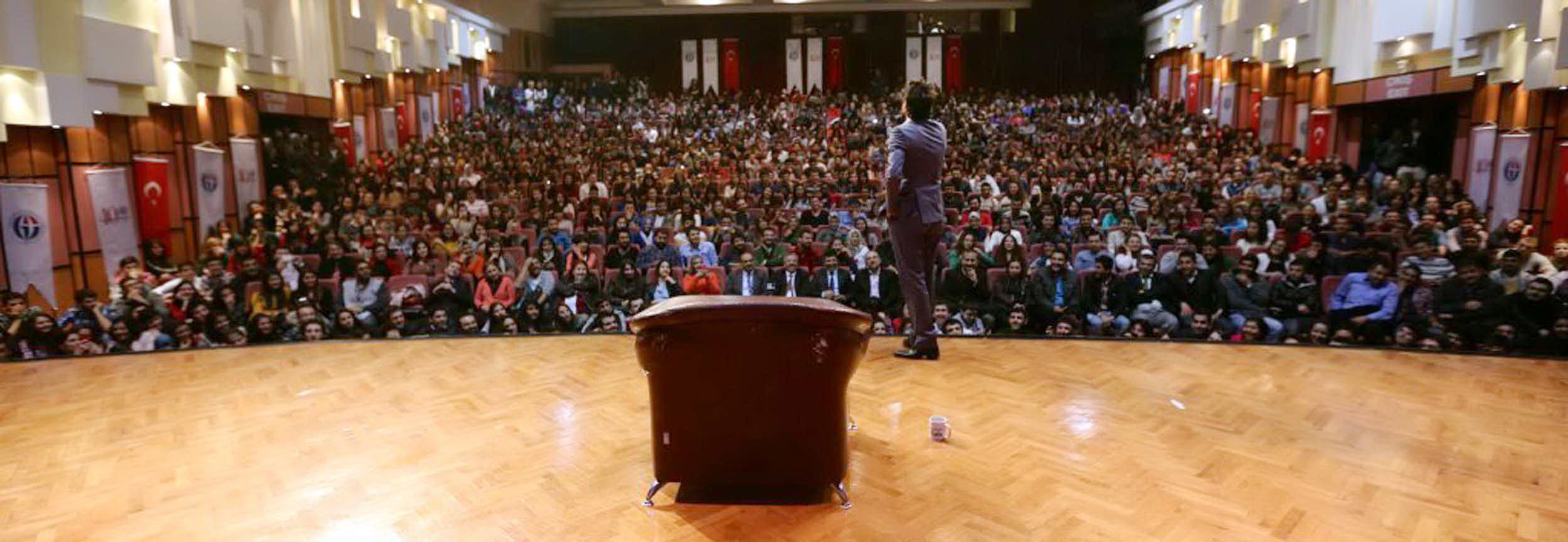 Gaziantep Üniversitesinin kuruluşunun “40. Yılı Etkinlikleri” çerçevesinde GAÜN Atatürk Kültür Merkezinde Komedyen Hayrettin Onur Karaoğuz tarafından “Stand-Up Gösterisi” gerçekleştirildi. Öğrencilerin yoğun ilgi gösterdiği gösteride konuşan Karaoğuz, Gaziantep Üniversitesine ilk defa geldiğini belirterek, Üniversitemiz öğrencileriyle birlikte olmaktan duyduğu memnuniyeti ifade etti. Etkinlik kapsamında ünlü komedyen kendi çektiği kamera şakalarından, popüler olan vidolardan farklı örnekler sunarak, bu görüntüleri çekerken karşılaştığı değişik olayları…