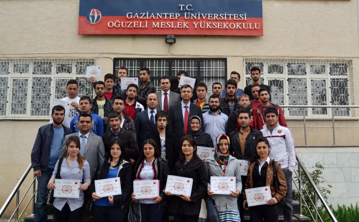 Gaziantep İtfaiye Daire Başkanı Ömer Yalım ve Oğuzeli Meslek Yüksekokulu Müdürü Yrd. Doç. Dr. Necip Fazıl Yılmaz tarafından öğrencilere sertifikaları takdim edildi.