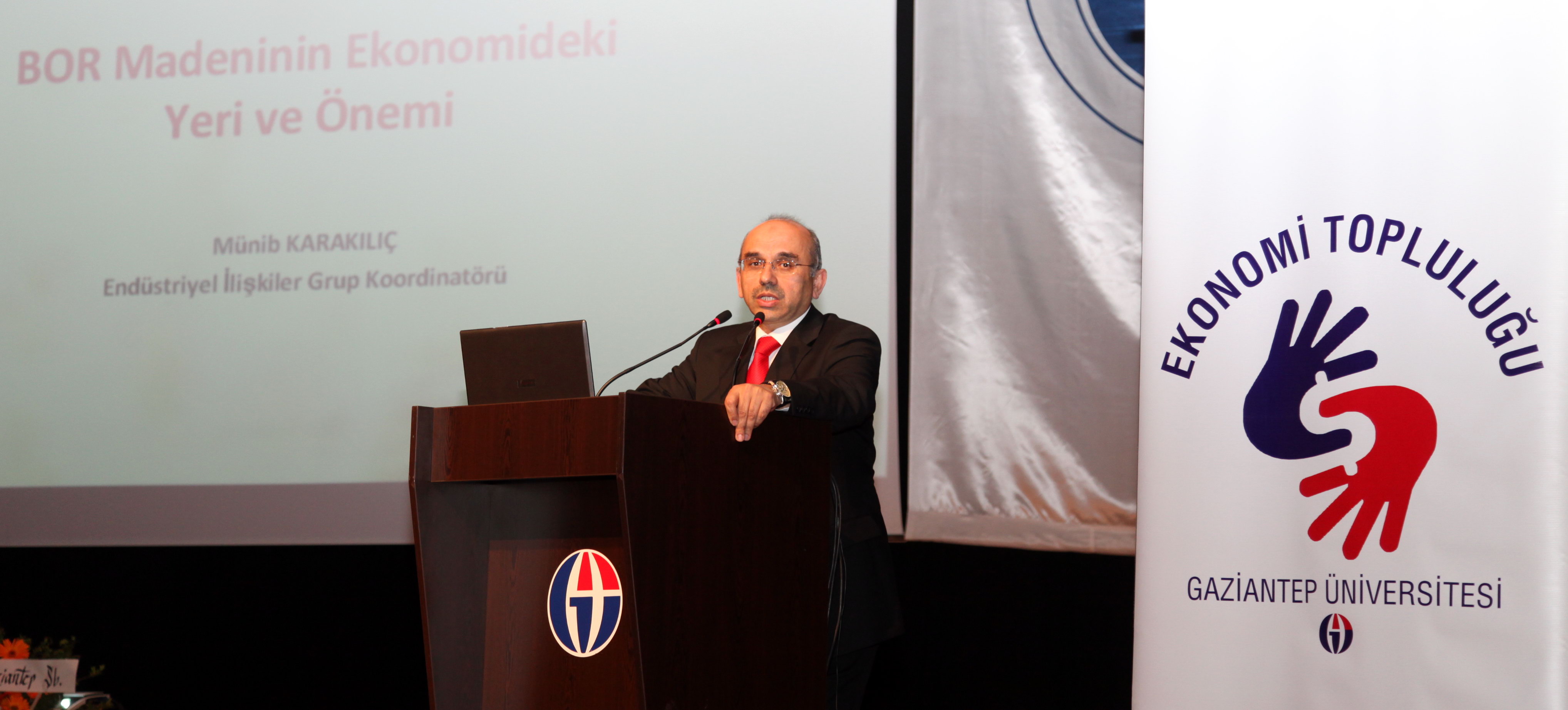 Gaziantep Üniversitesi (GAÜN) Ekonomi Topluluğu Öğrencileri ile Tüm Sanayici ve İşadamları Derneği (TÜMSİAD) Gaziantep Şubesi işbirliği çerçevesinde düzenlenen ve Ulusal Bor Araştırma Enstitüsü Endüstriyel İlişkiler Grup Koordinatörü Münib Karakılıç’ın konuşmacı olarak katılığı "Bor Madeninin Ekonomideki Yeri ve Önemi" konulu konferans Atatürk Kültür Merkezinde gerçekleştirildi. Konferansa; GAÜN Rektör Danışmanı Prof. Dr. M. Yaşar Gündoğdu, Tüm Sanayici ve İşadamları Derneği (TÜMSİAD) Gaziantep…