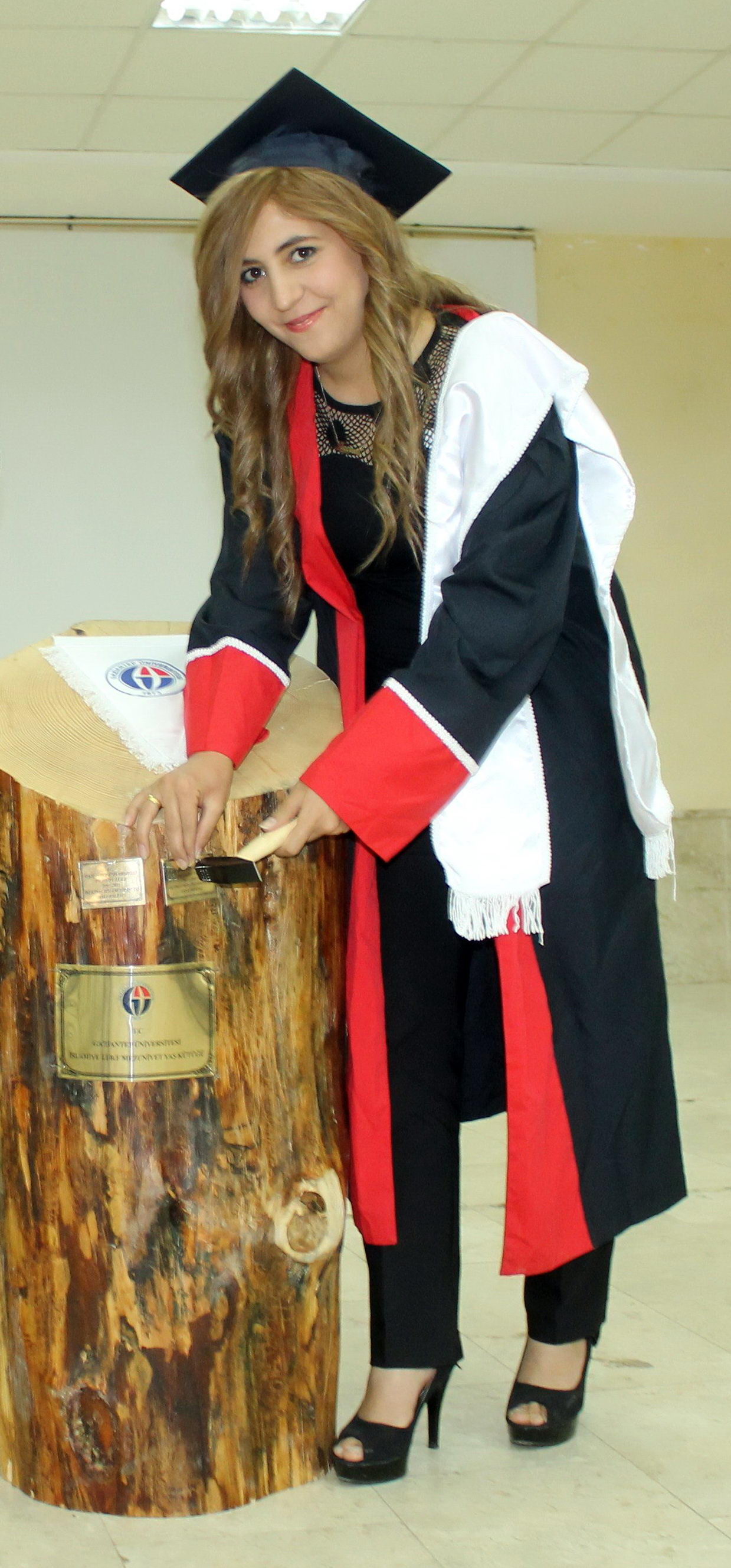 Fakülte öğrencilerinden İktisat Bölümü öğrencisi dönem birincisi Ayşe Yılmaz ile İşletme bölümü dönem birincisi Aslı Baltacı’nın “Geleneksel Mezuniyet Kütüğü”ne plaket çakmasının sonrasında öğrenciler topluca kep fırlattılar.