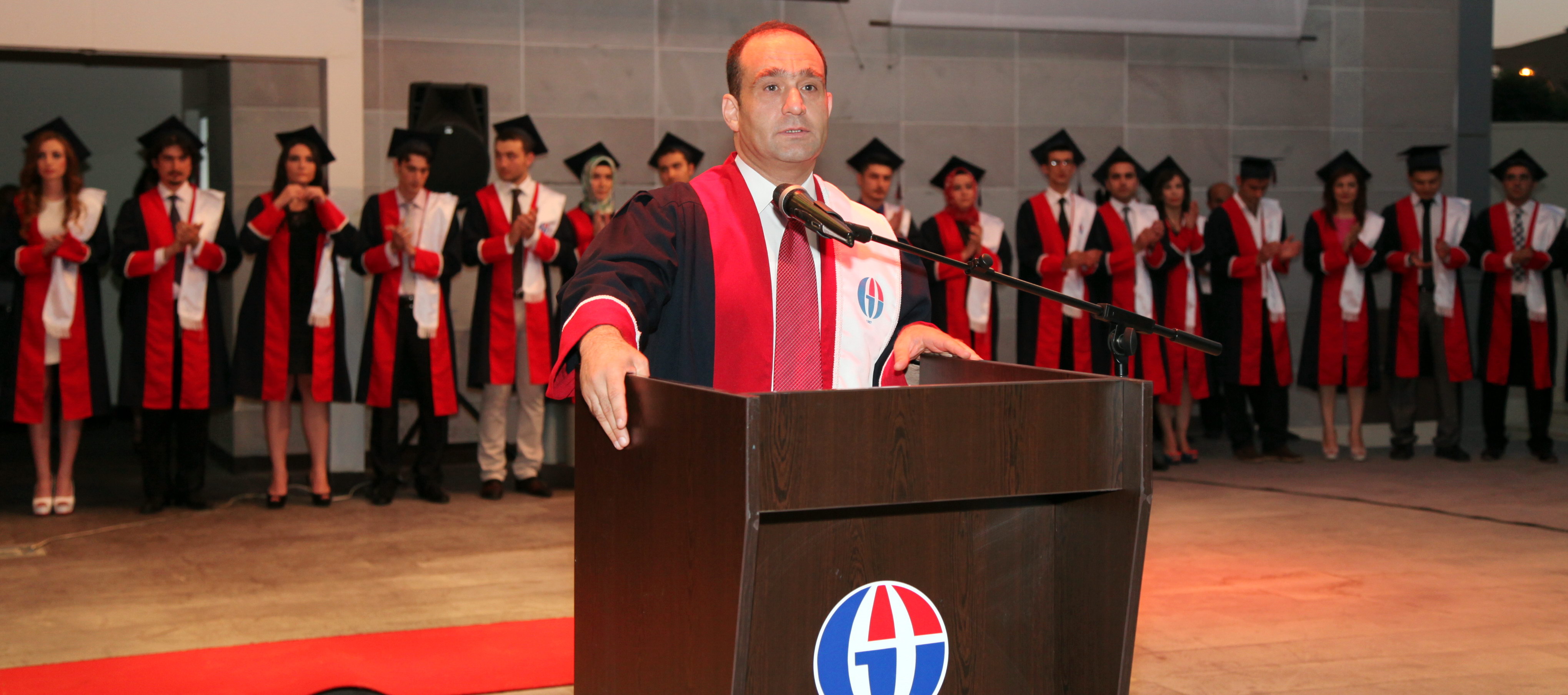 Mezun olan öğrencileri kutlarken, dönem birincilerinin hep kız öğrenci olmasının altını çizen Tıp Fakültesi Dekanı Prof. Dr. Abdurrahman Kadayıfçı ise, “Ben 5 dönemdir mezuniyet törenlerine katılıyorum. Daha, erkek öğrencilerin birinci olduğunu görmedim. Hatta geçmiş 40 dönemi araştırdım; 37’sinde kızlar birinci olmuş. Bir erkek olarak biraz rahatsız olmakla birlikte, 3 kız babası olarak mutsuz olduğumu söyleyemeyeceğim” dedi. Mezun öğrencilerin kalitesinin aslında kendilerini eğiten eğitim kadrosunun kalitesiyle ölçüştüğünün altını çizen Prof. Dr. Kadayıfçı, konuşmasının devamında şunları söyledi: “Genç doktorlar olarak sizlere en büyük tavsiyem; meslek hayatınız boyunca insan sevgisi ve empatiyi vazgeçmeyeceğiniz prensipler olarak uygulamanızdır. Meslektaşlarınızda gördüğünüz eksiklikler, eleştirdiğiniz hatalar varsa onları lütfen siz yapmayın. Sağlıkta, Türkiye’nin son 15 yıldaki kazanımları inkâr etmek mümkün değil. Bunu sağlayanlara teşekkür ediyoruz. Bugünü değerlendirirken geçmişimizi de unutmamak lazım. Ben Hacettepe Üniversitesi’nde asistanken insanların bir gün önce mesai bitiminde ertesi gün için muayene sırasına girdiklerini biliyorum”.